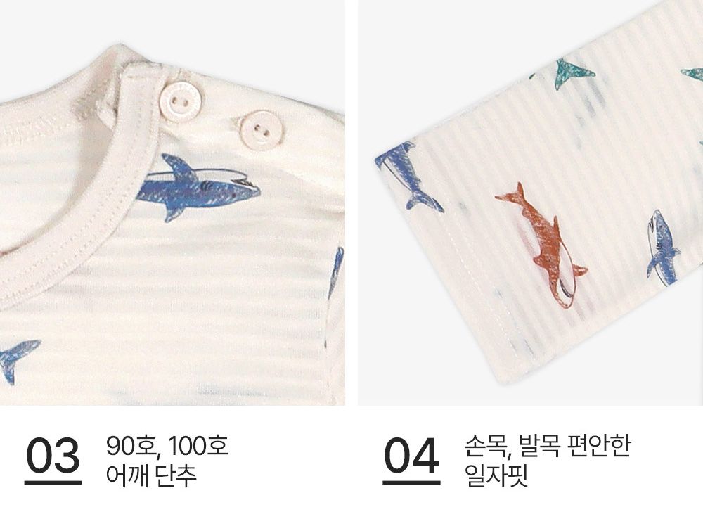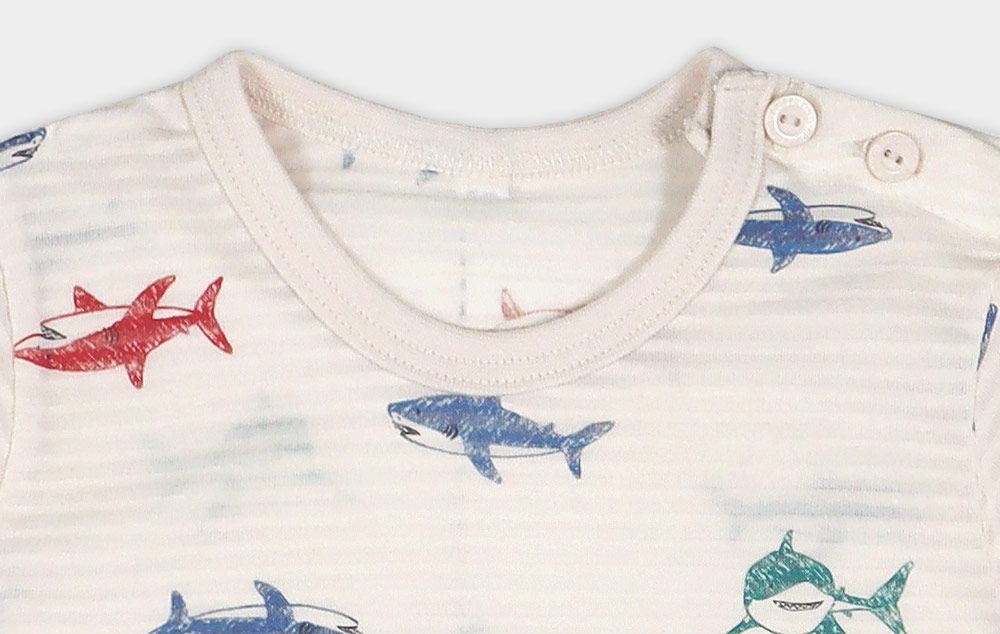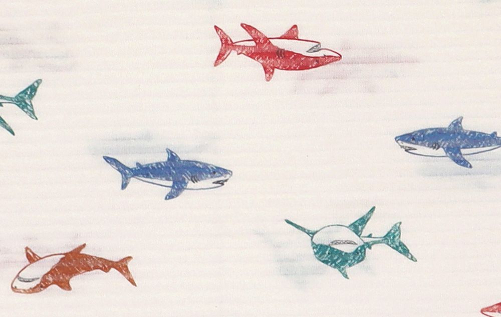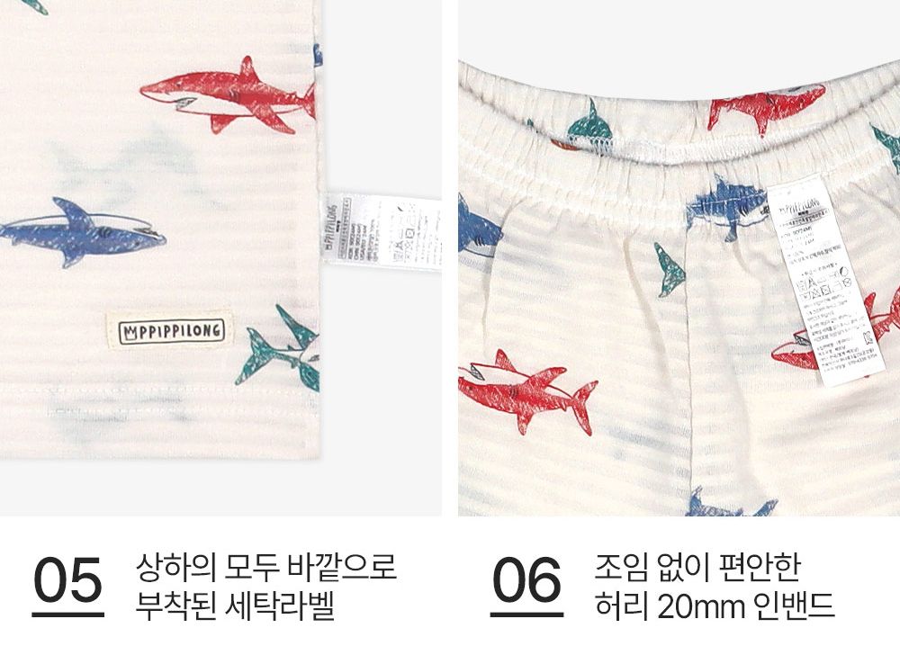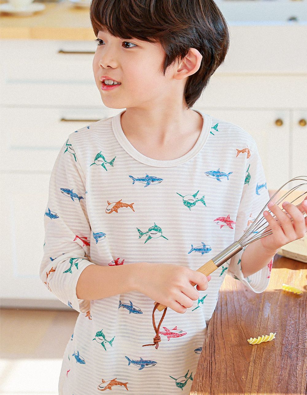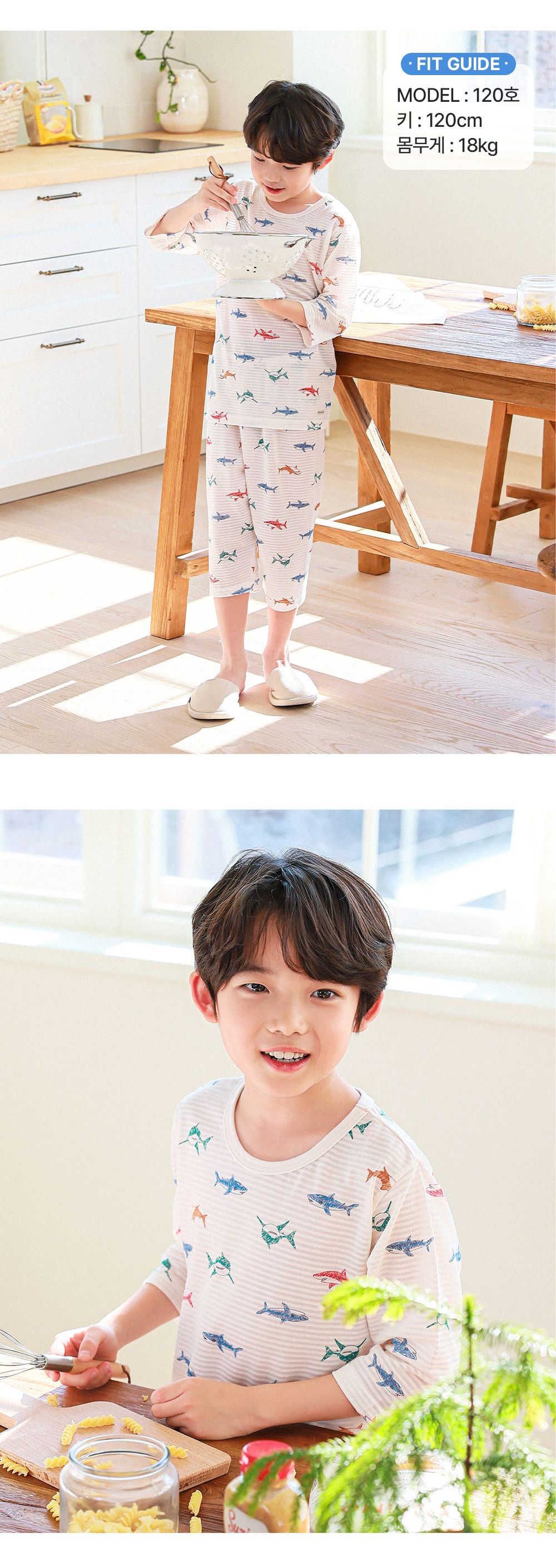 韓國 Ppippilong - 舒透提花7分袖家居服/睡衣-塗鴉鯊魚-米