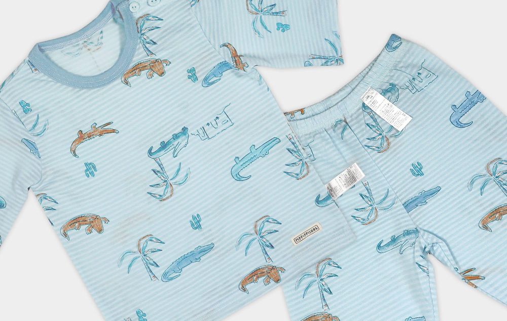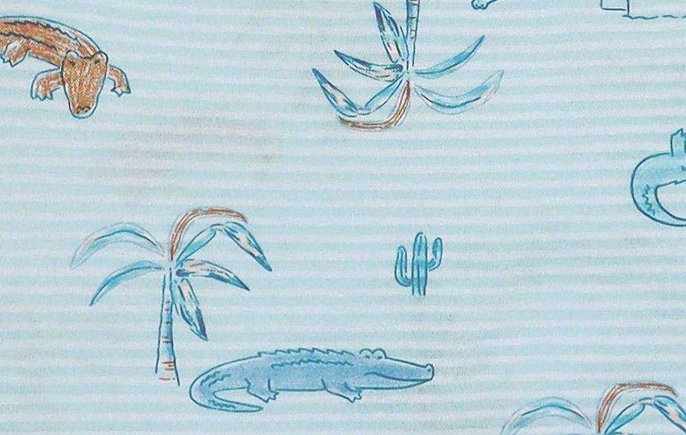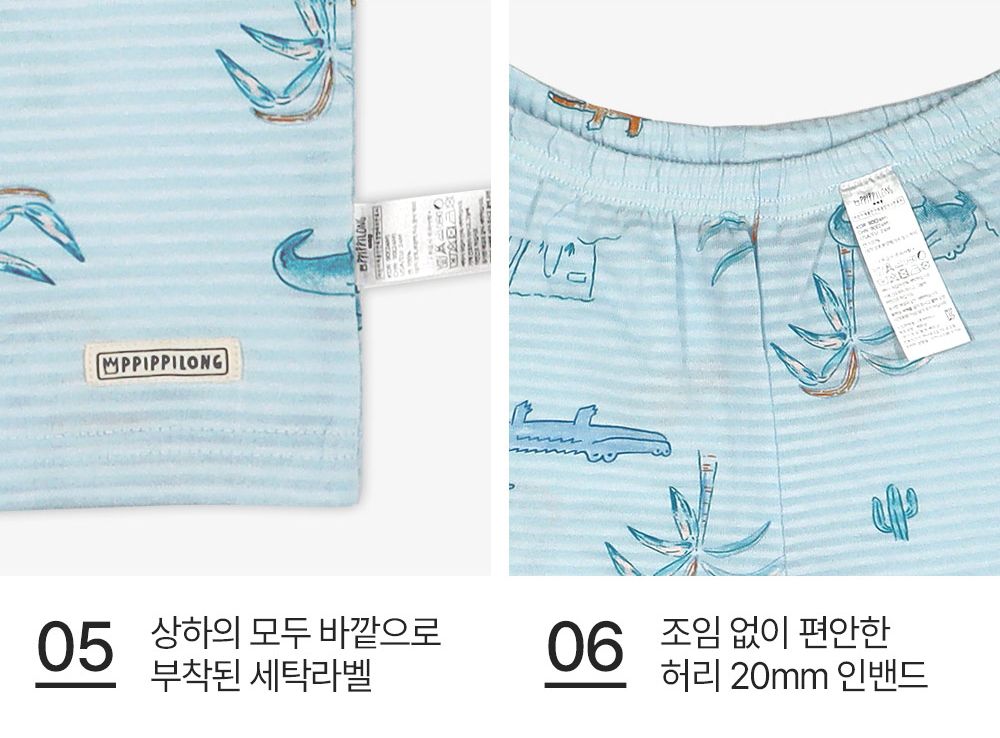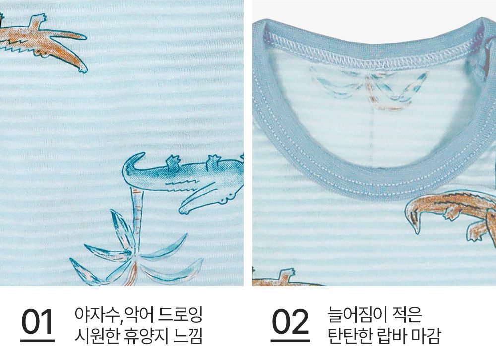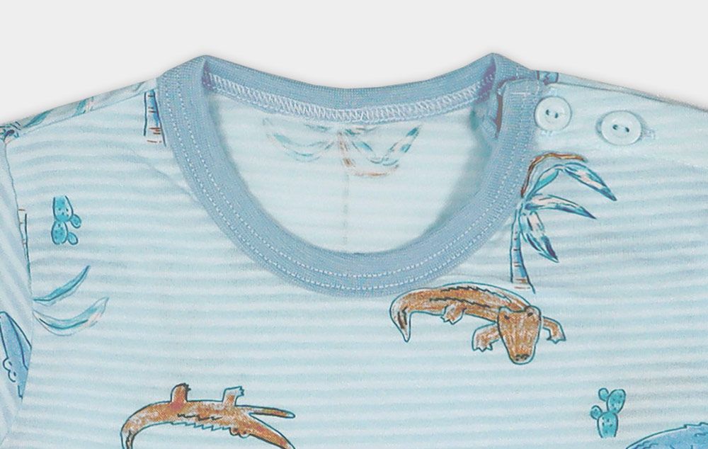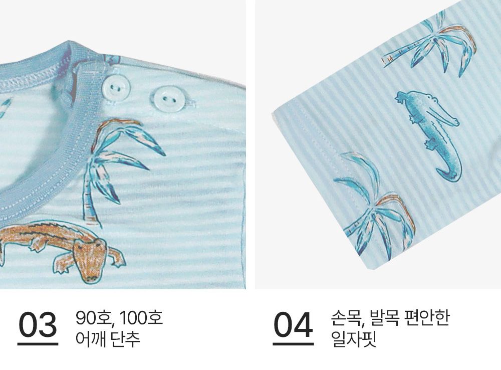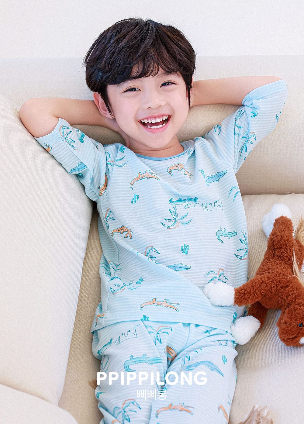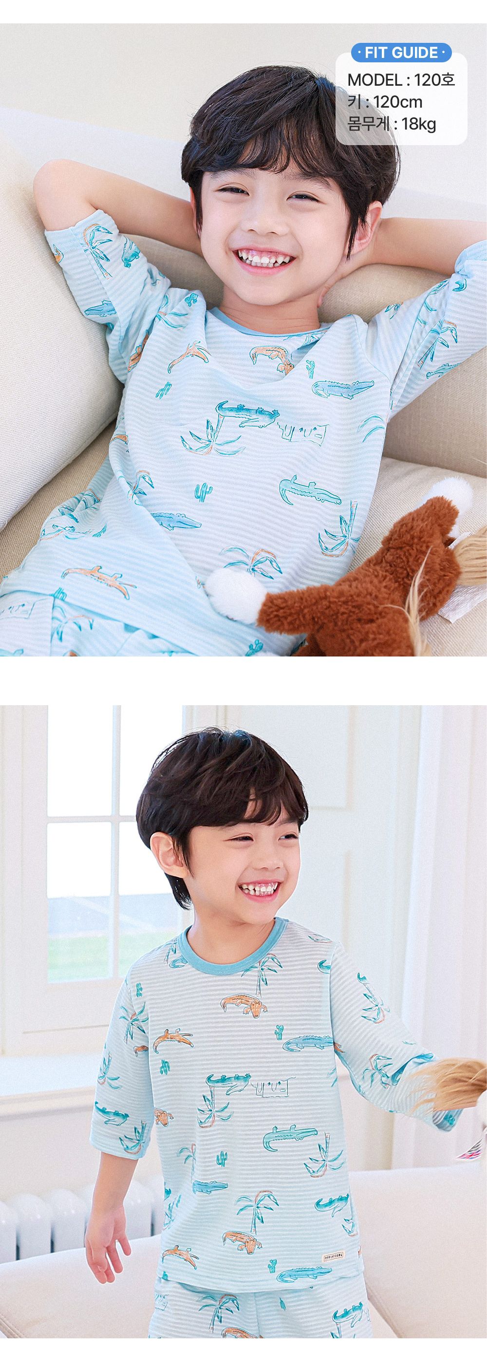 韓國 Ppippilong - 舒透提花7分袖家居服/睡衣-塗鴉鱷魚-水藍