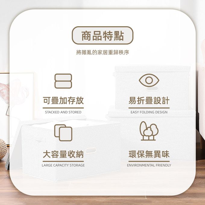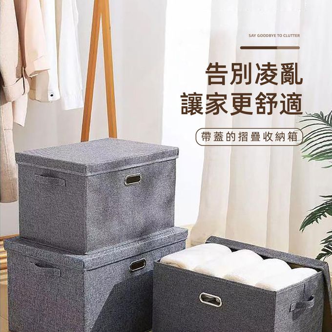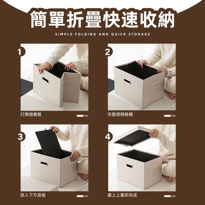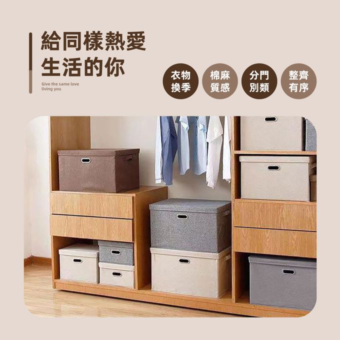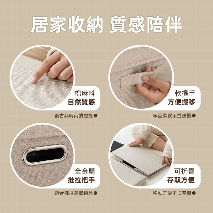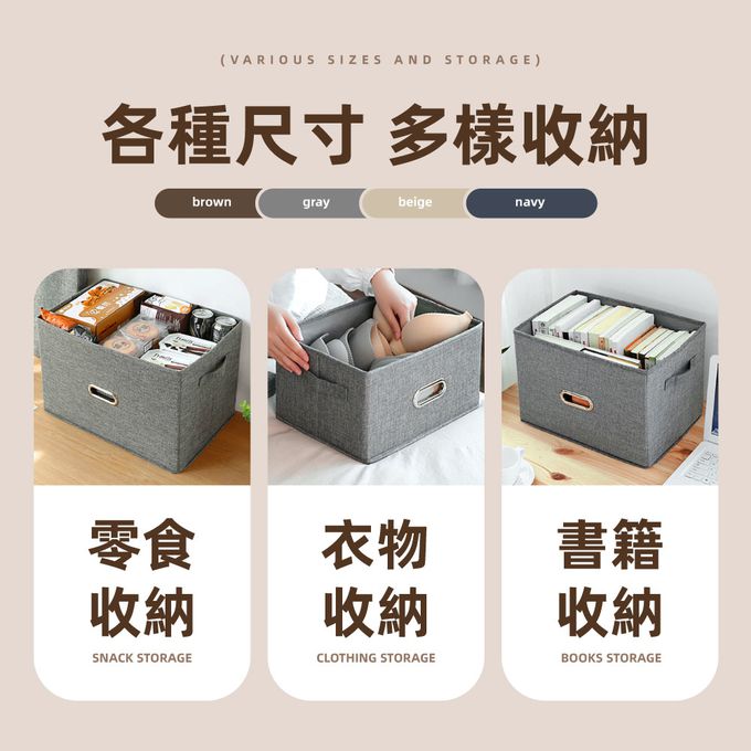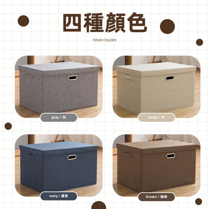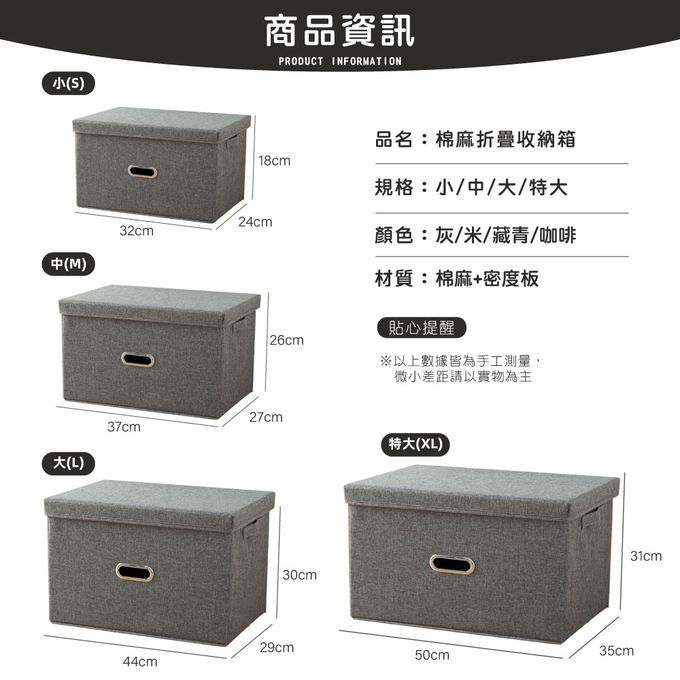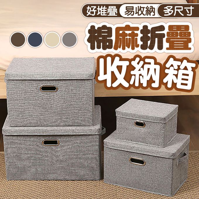 (小)棉麻折疊收納箱-灰/米/藏青/咖啡
