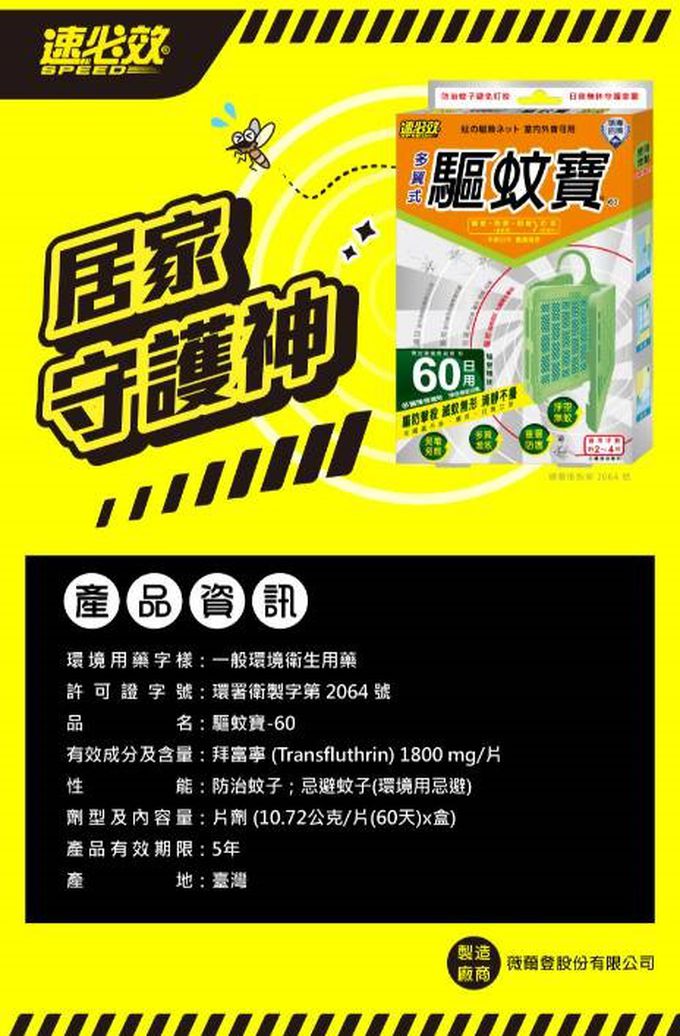 品名:【速必效】驅蚊寶-60日/片