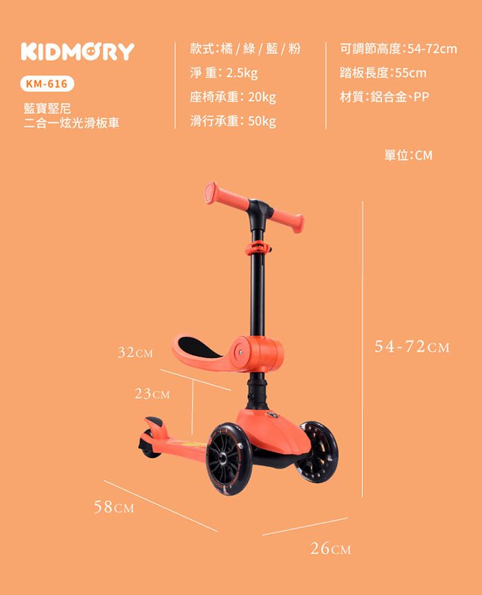 品名:藍寶堅尼二合一炫光滑板車 KM-616