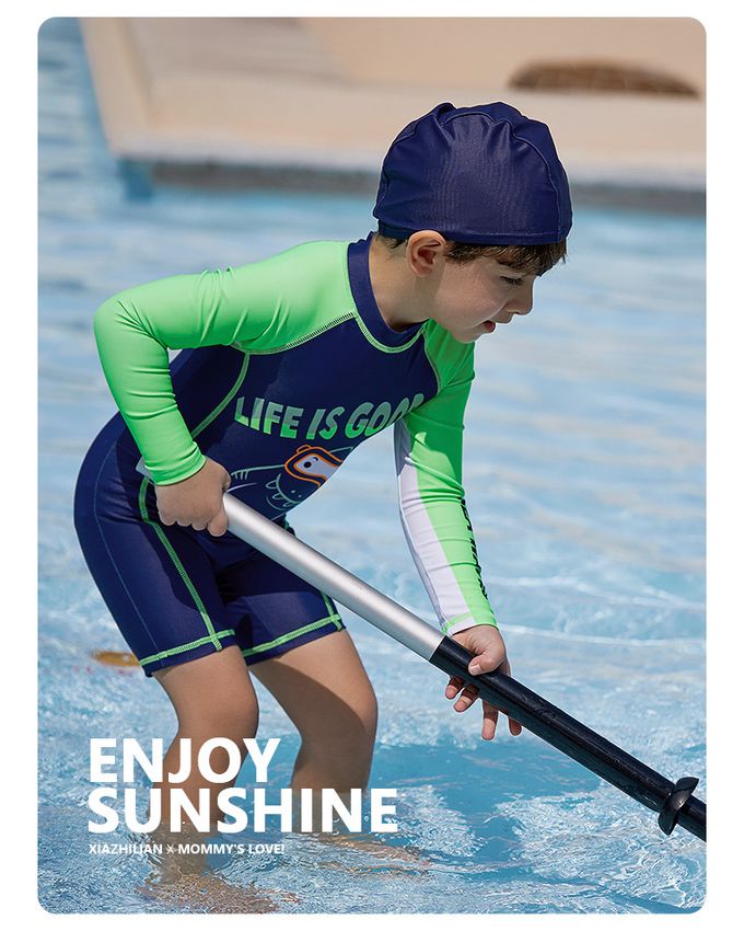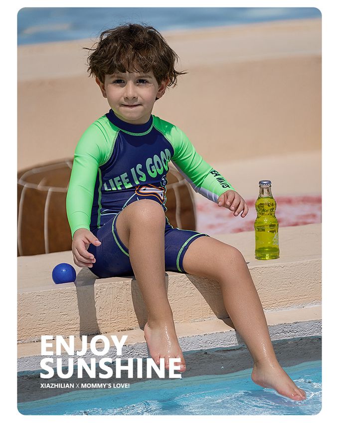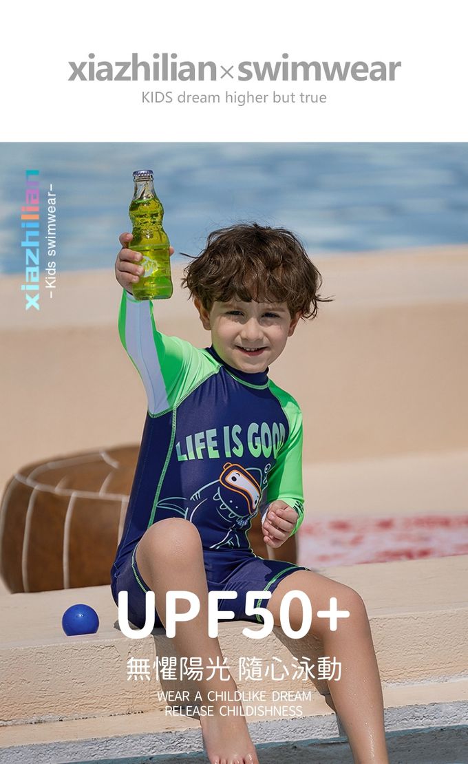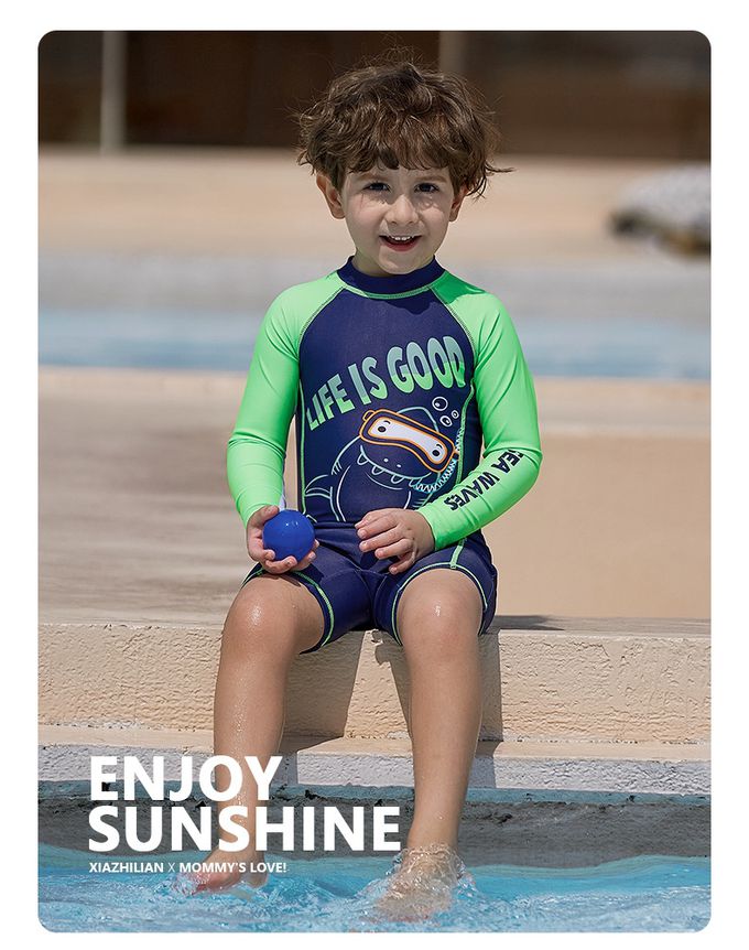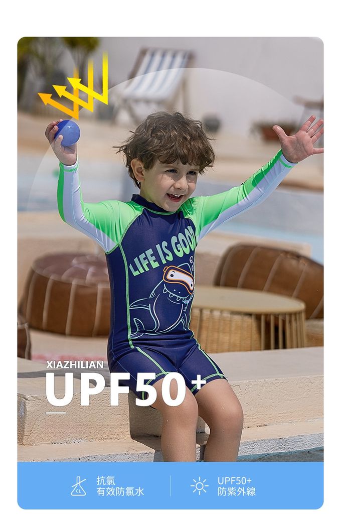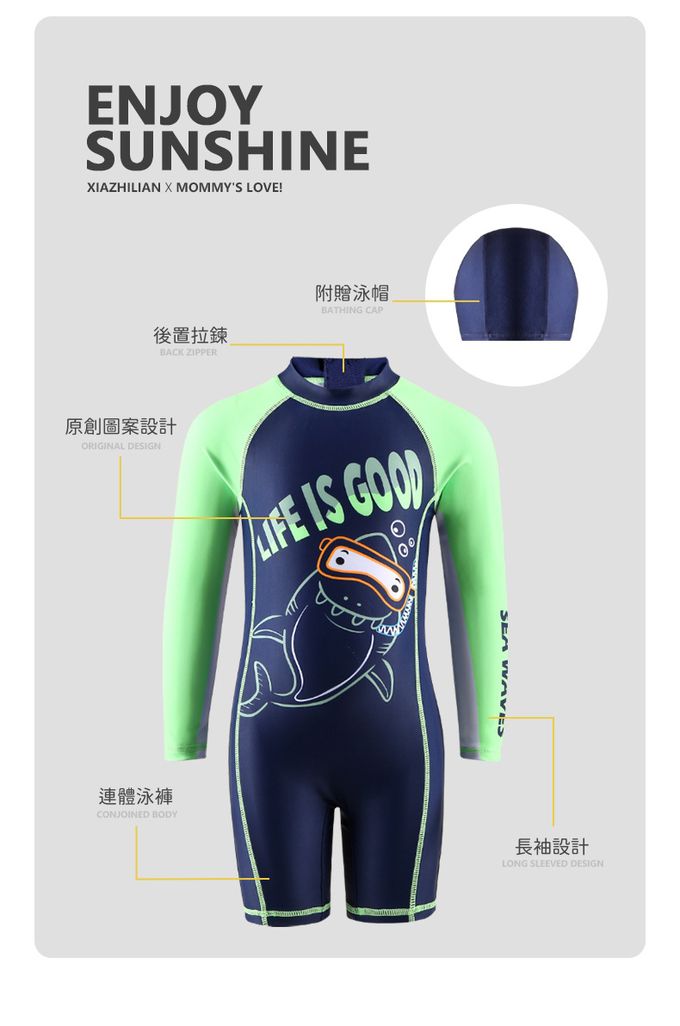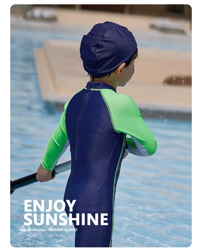 • 品名:男寶防曬長袖連身泳裝(附帽子)
