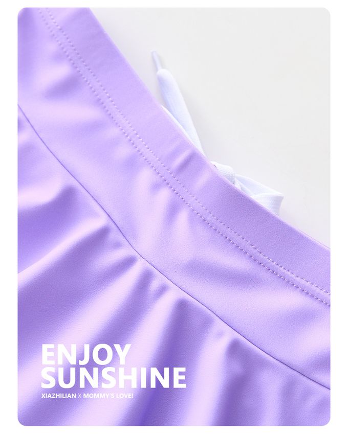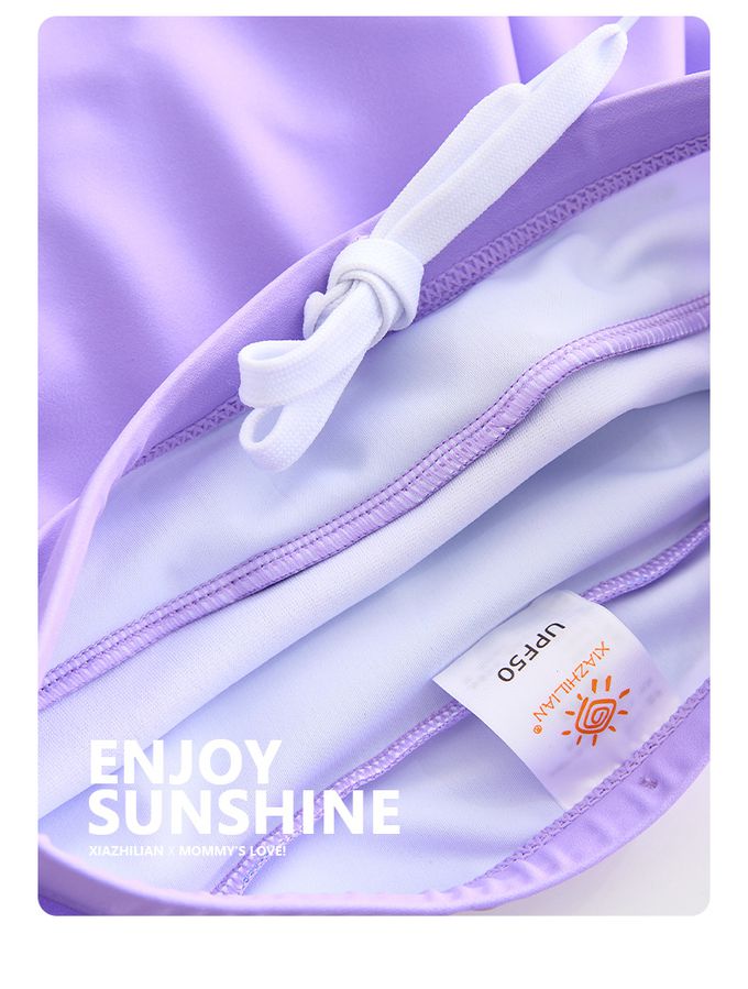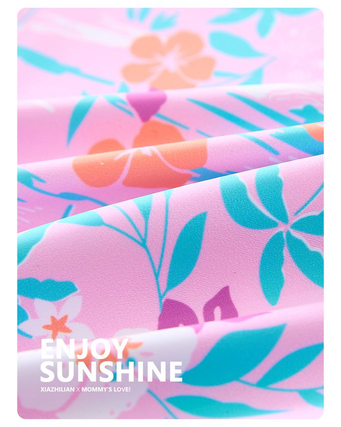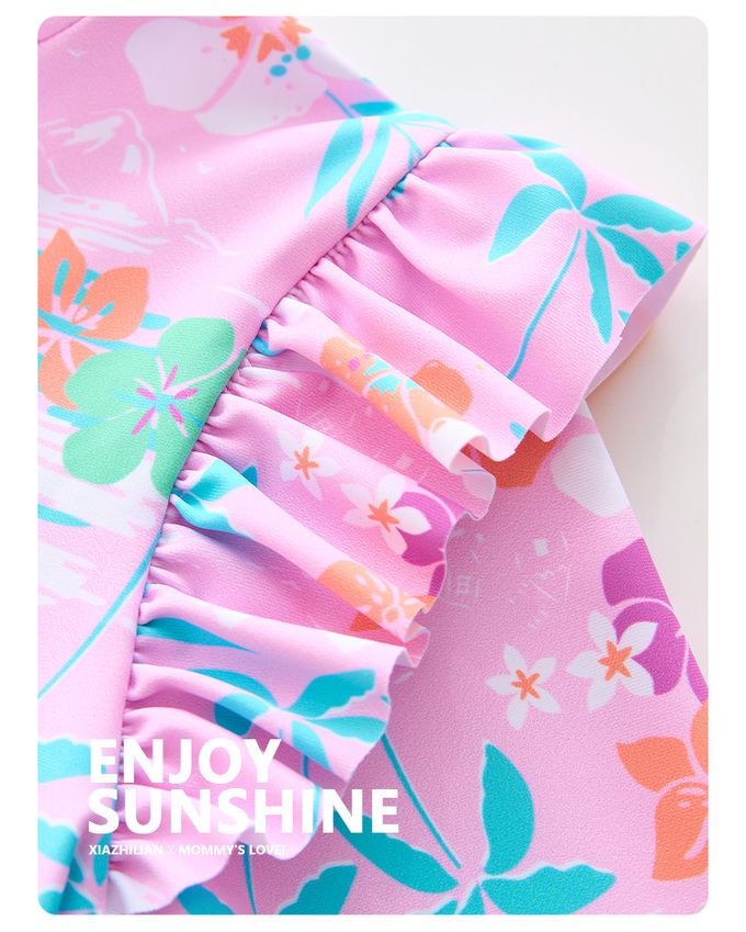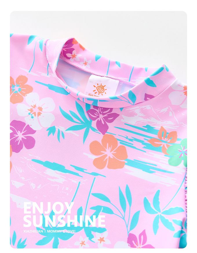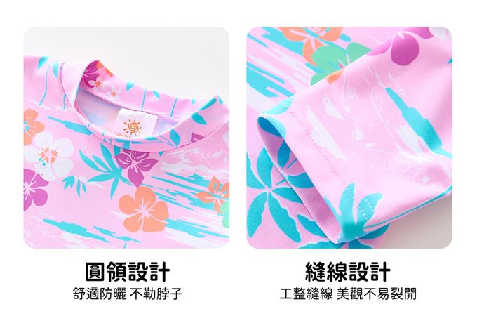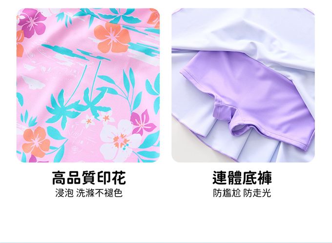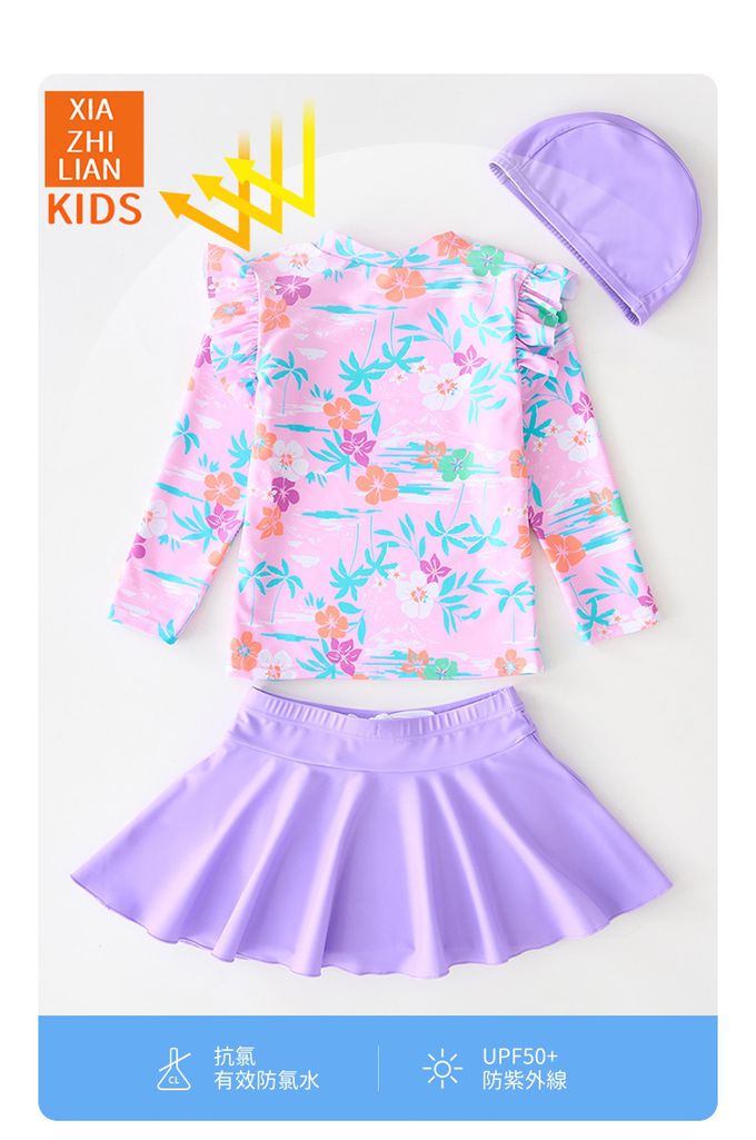 女寶防曬長袖泳裝套裝(附帽子)-裙款_甜美花朵-粉紫