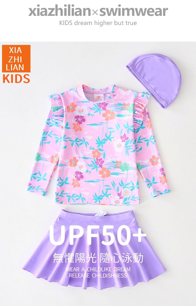 品名:女寶防曬長袖泳裝套裝(附帽子)