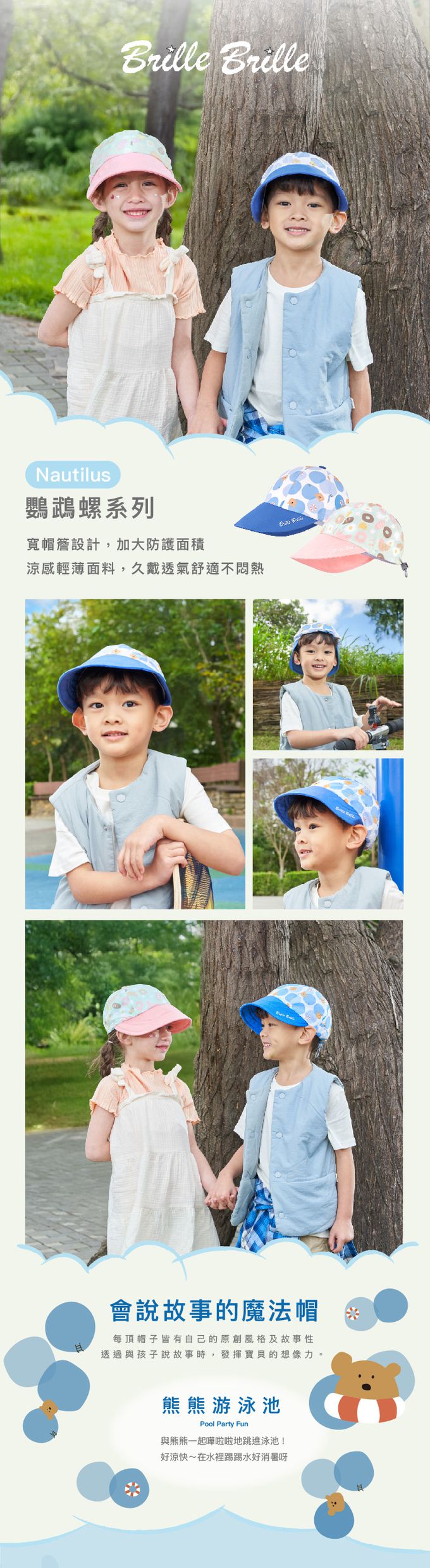 《鸚鵡螺系列 The Nautilus》防曬寬簷棒球帽 -熊熊游泳池UPF50+-禮盒包裝、頭圍46-56cm (2-10歲)