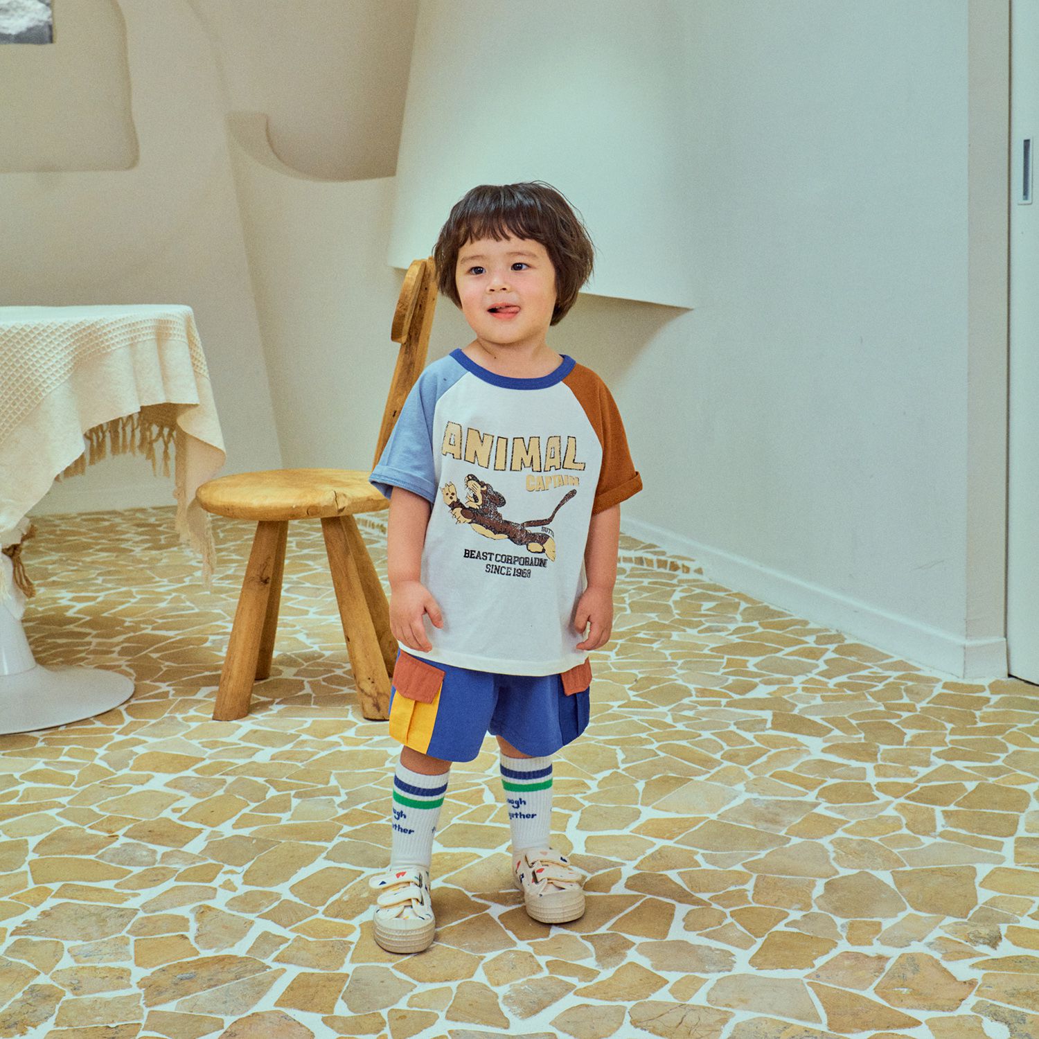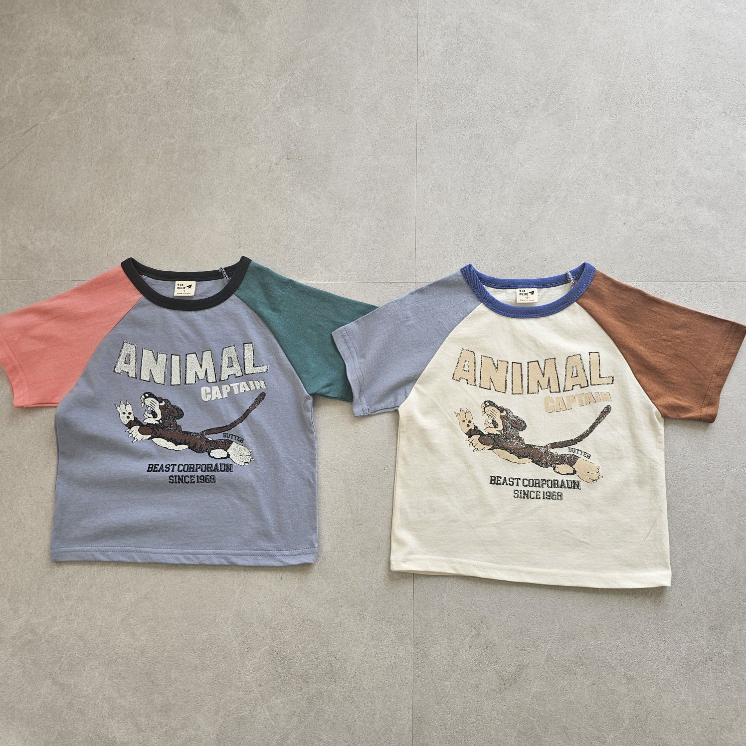 韓國 First Blue - 復古老虎拼色短袖上衣