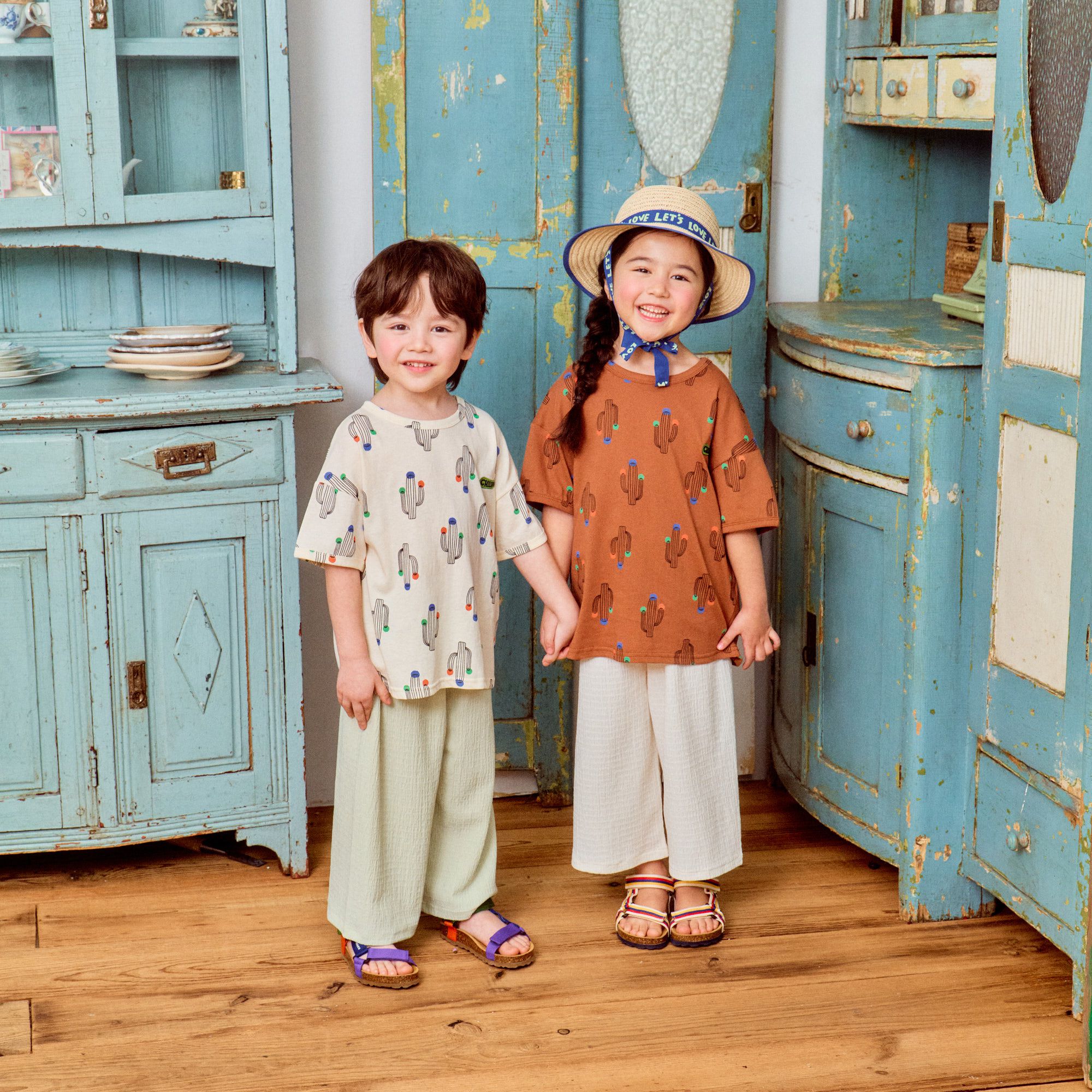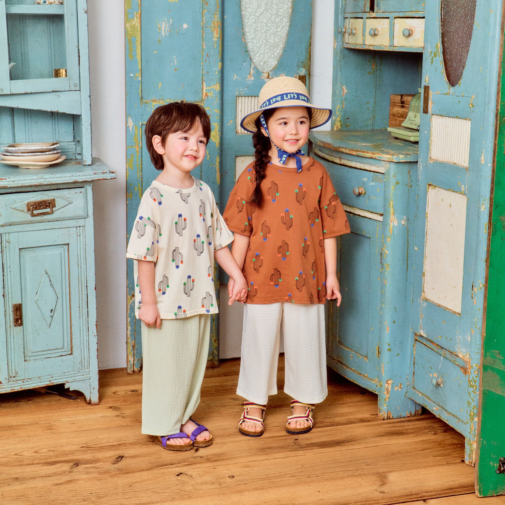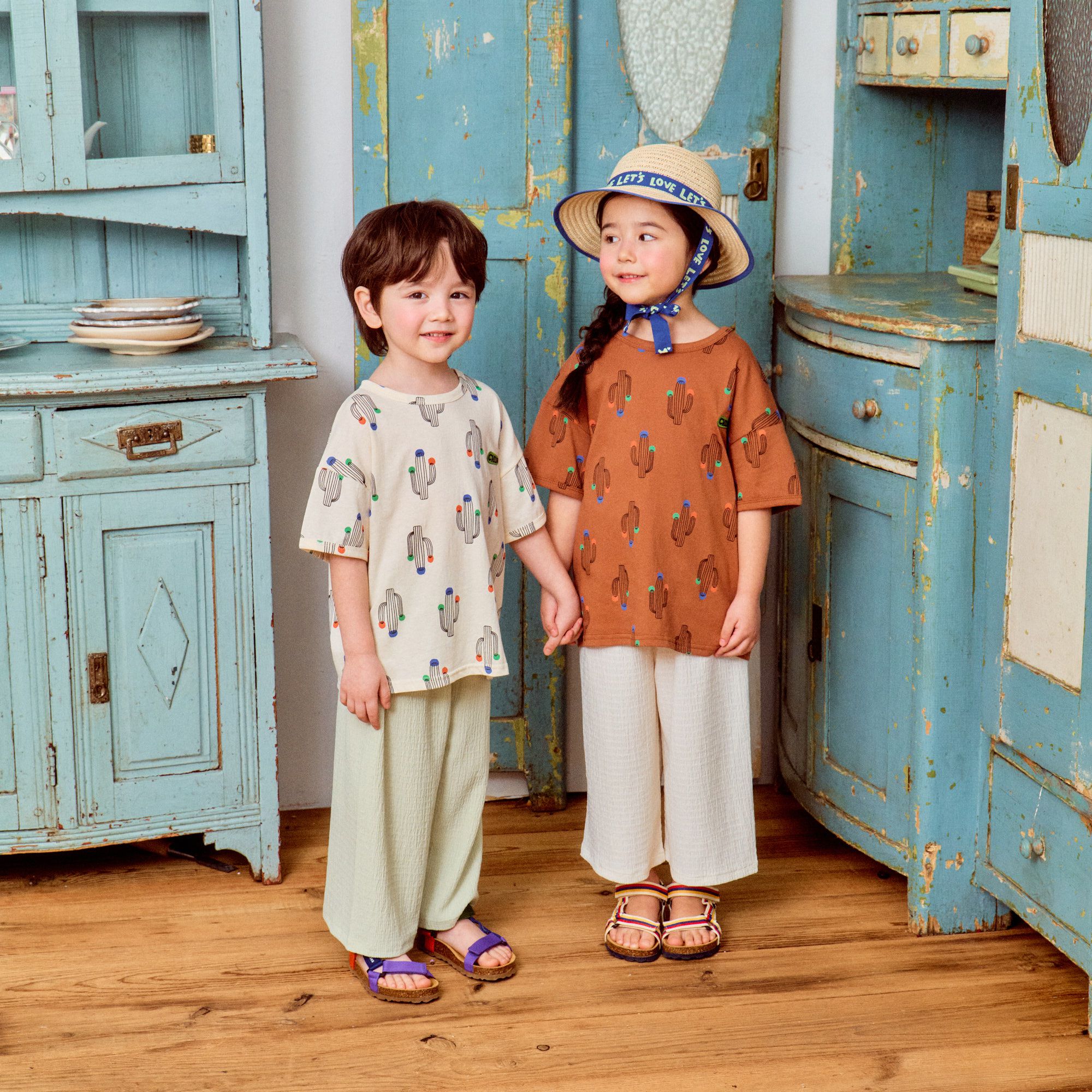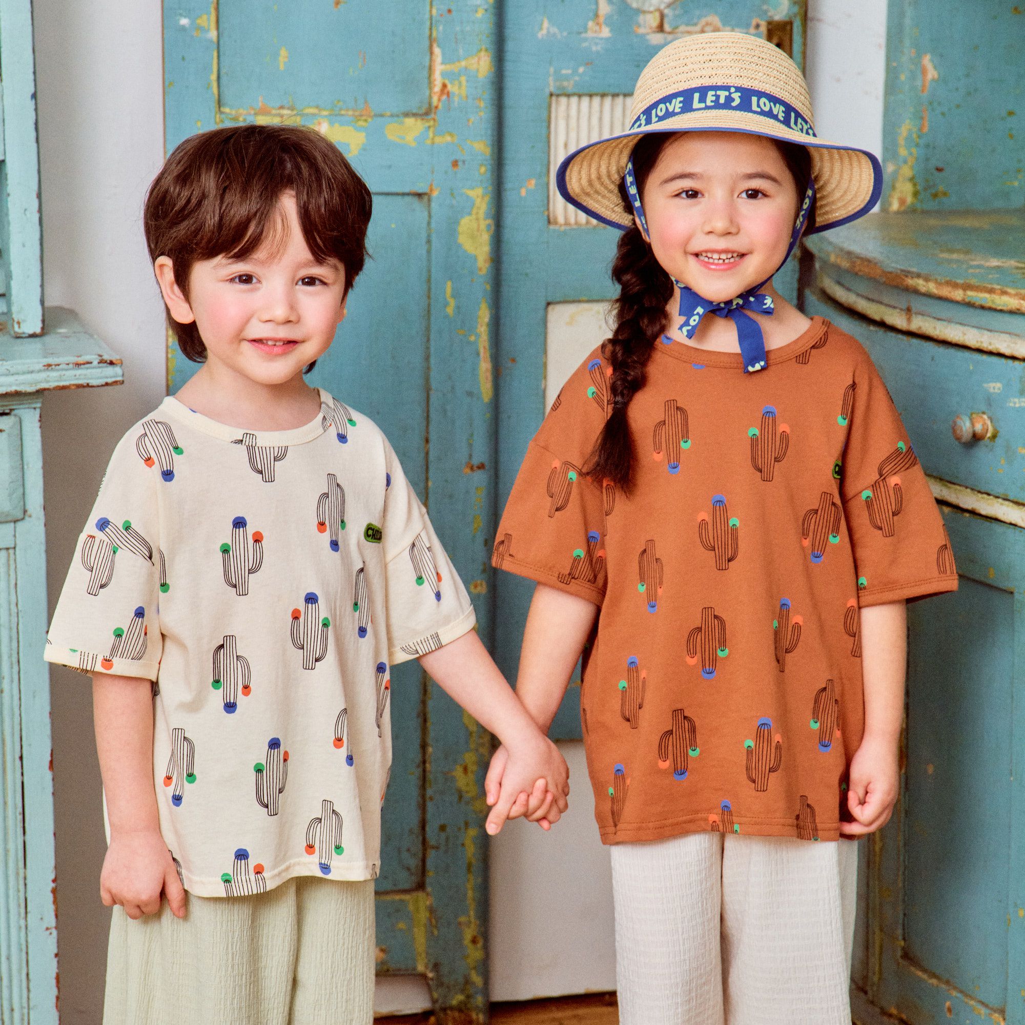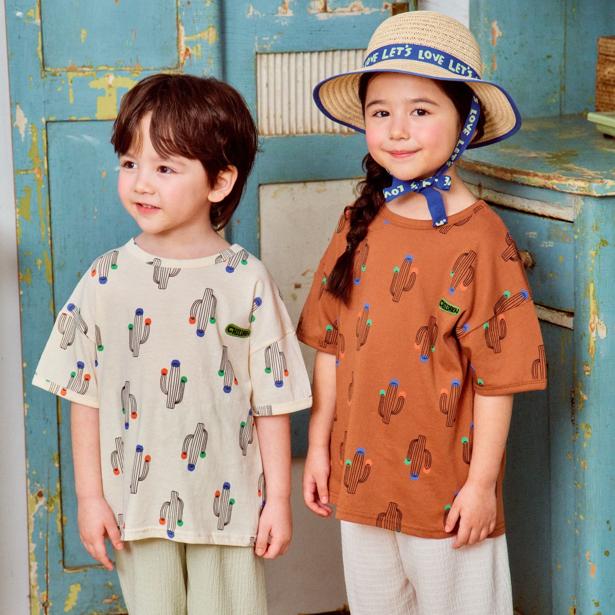 韓國 First Blue - 手繪仙人掌短袖上衣-米