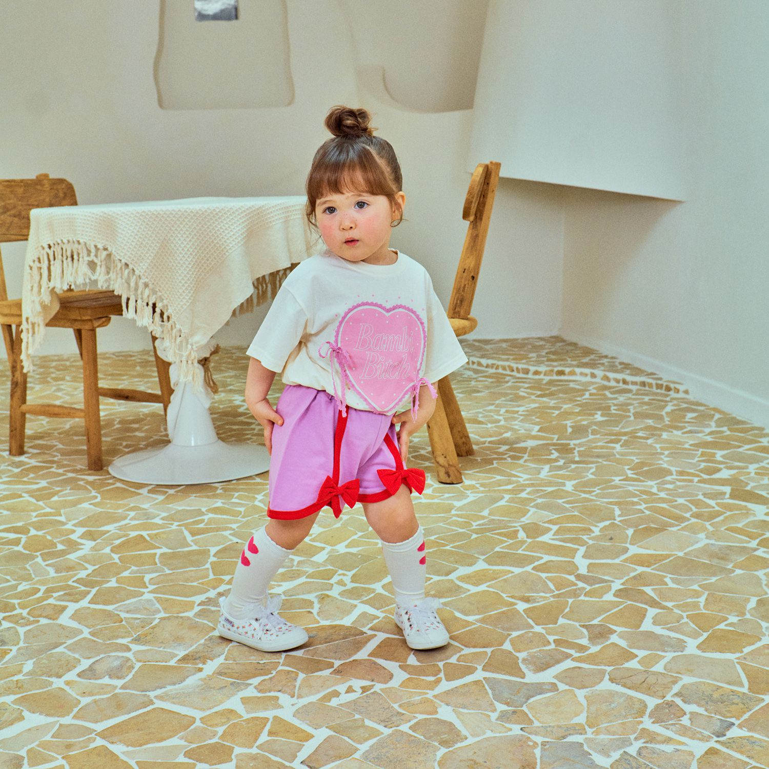 韓國 First Blue - 大裝飾蕾絲愛心短袖上衣