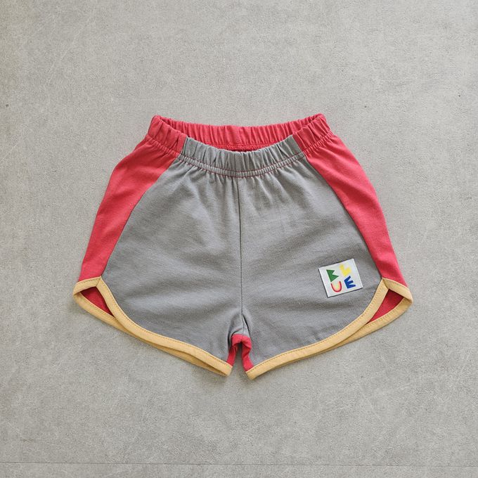 韓國 First Blue - 鬆緊腰撞色休閒短褲-灰