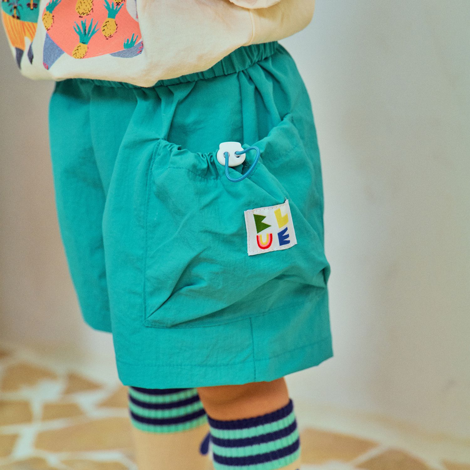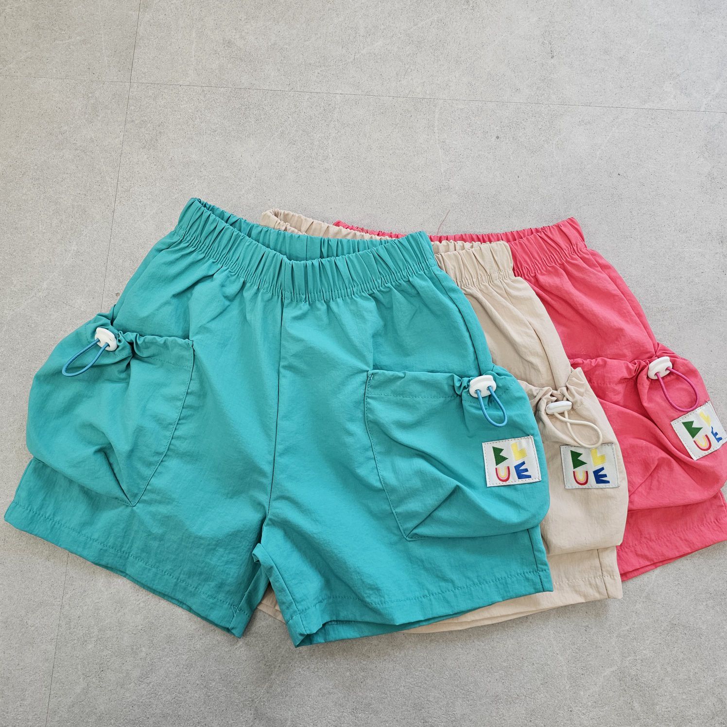 韓國 First Blue - 鬆緊腰可調式口袋短褲-土耳其綠