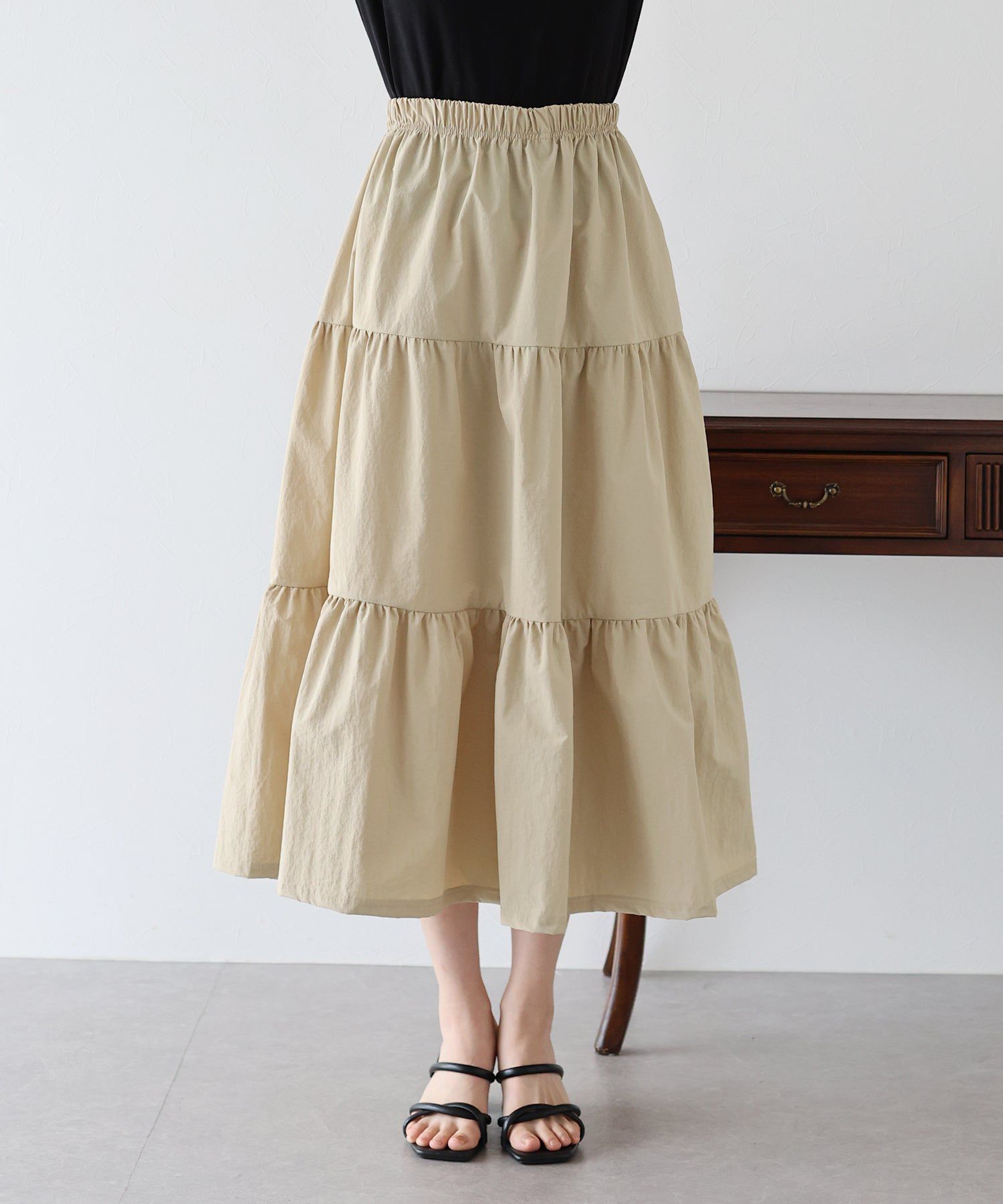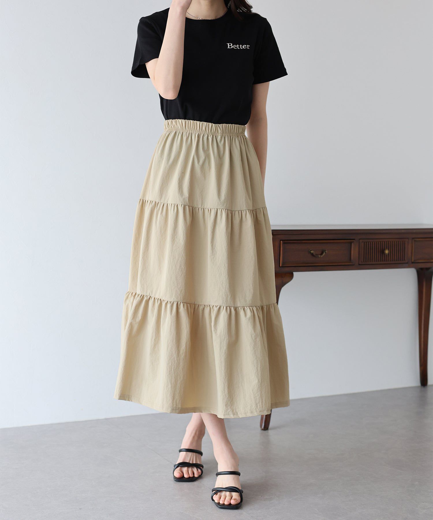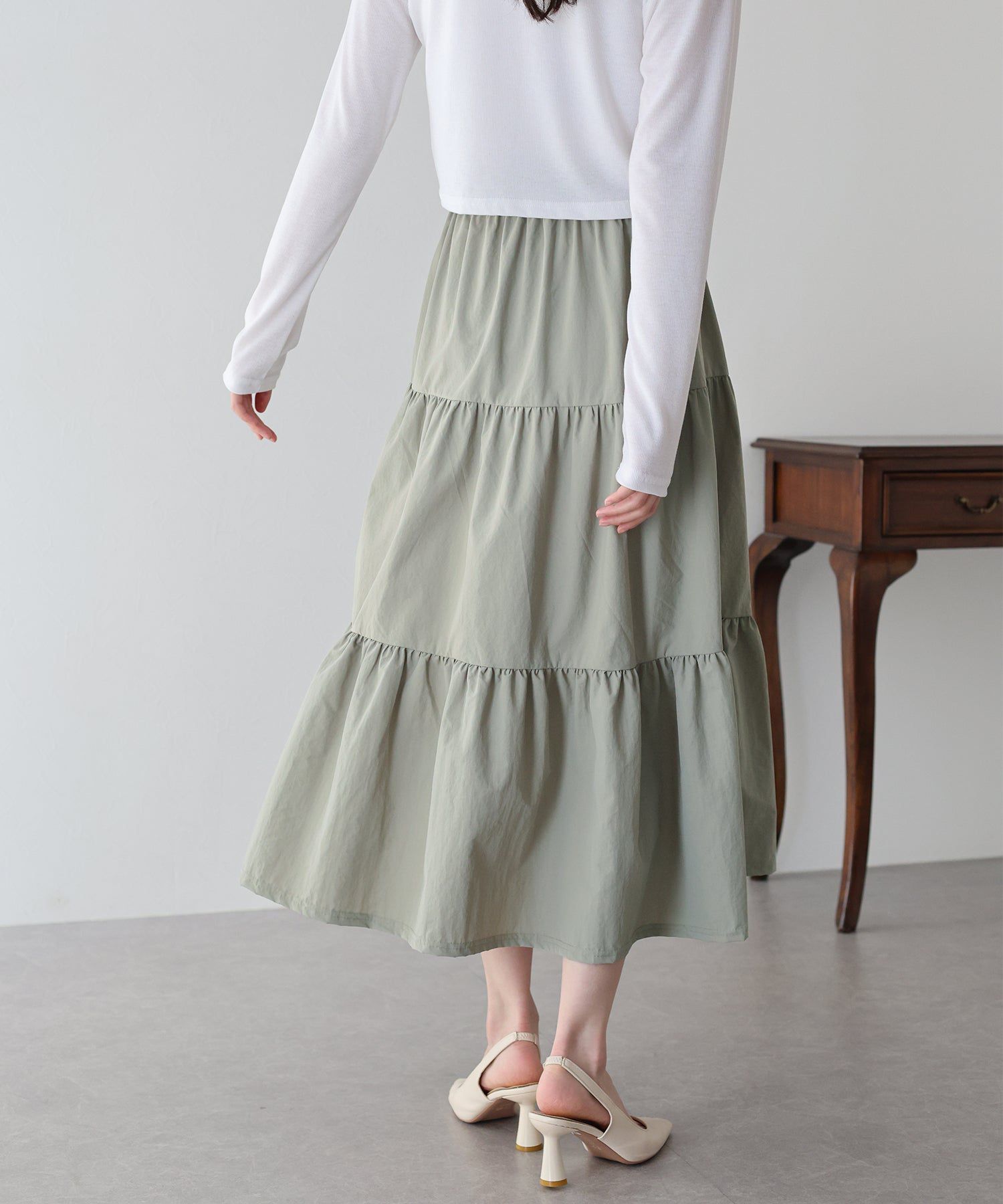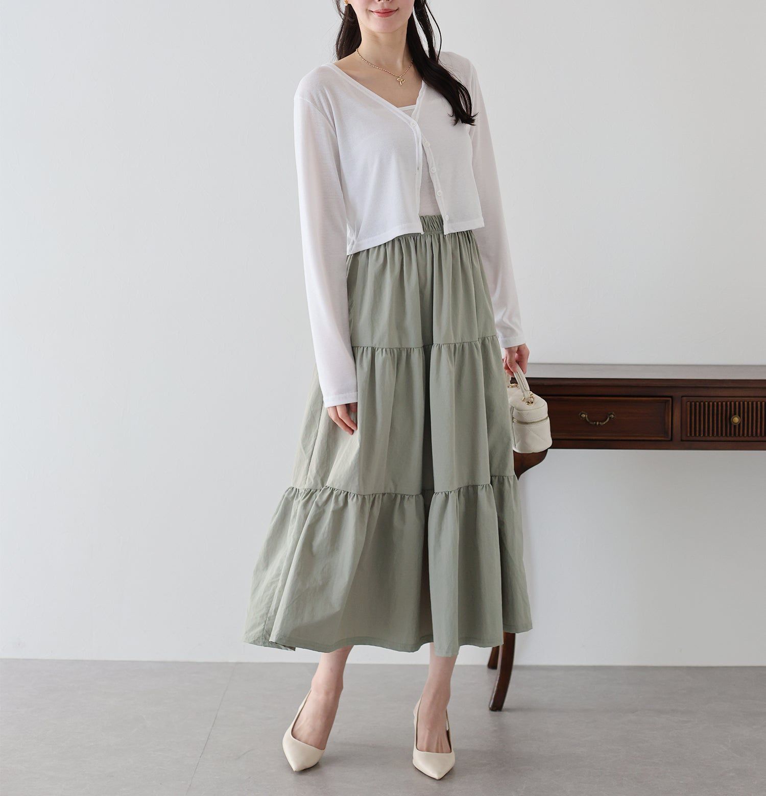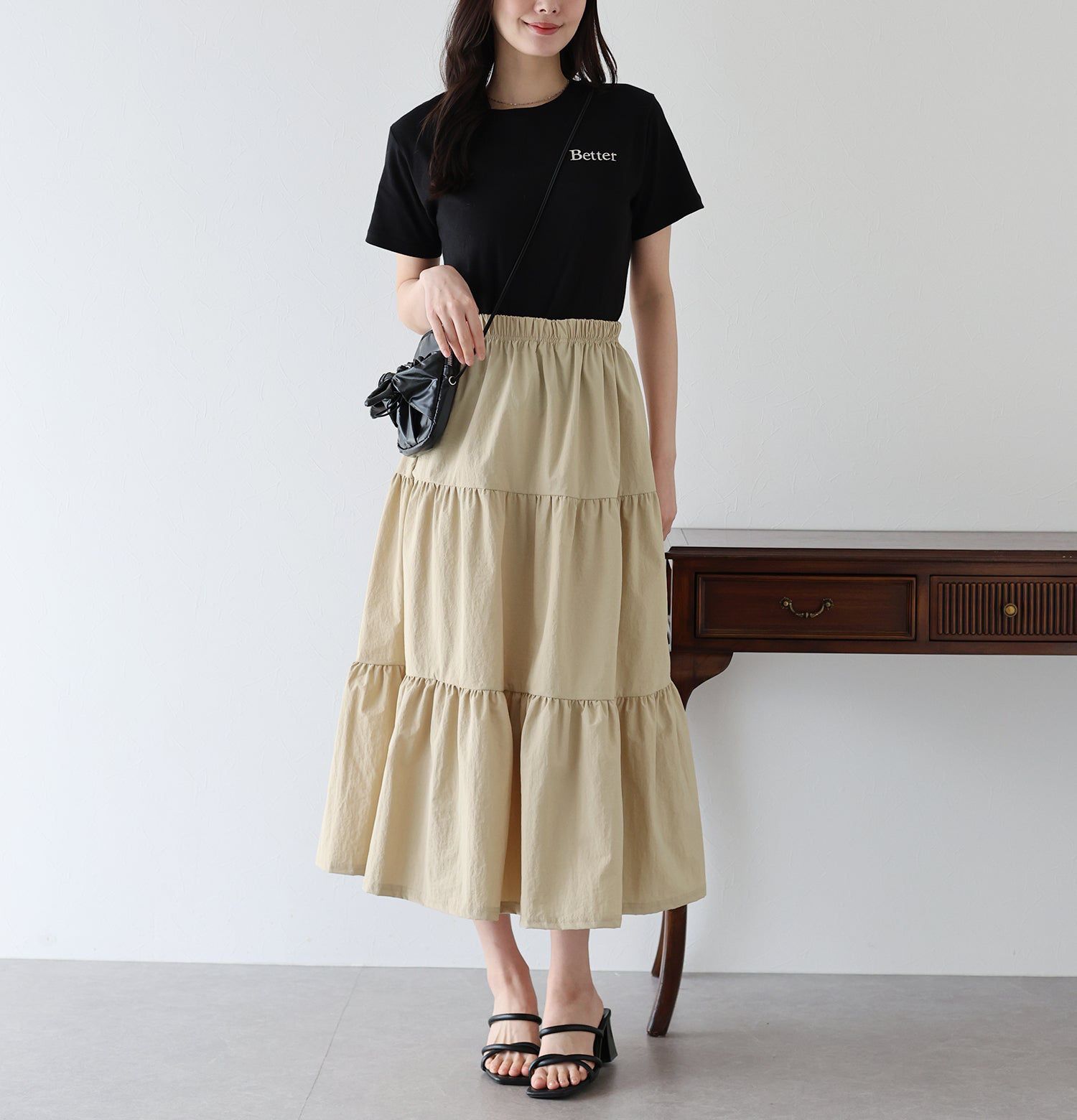 • 品名:輕盈感尼龍分層鬆緊長裙