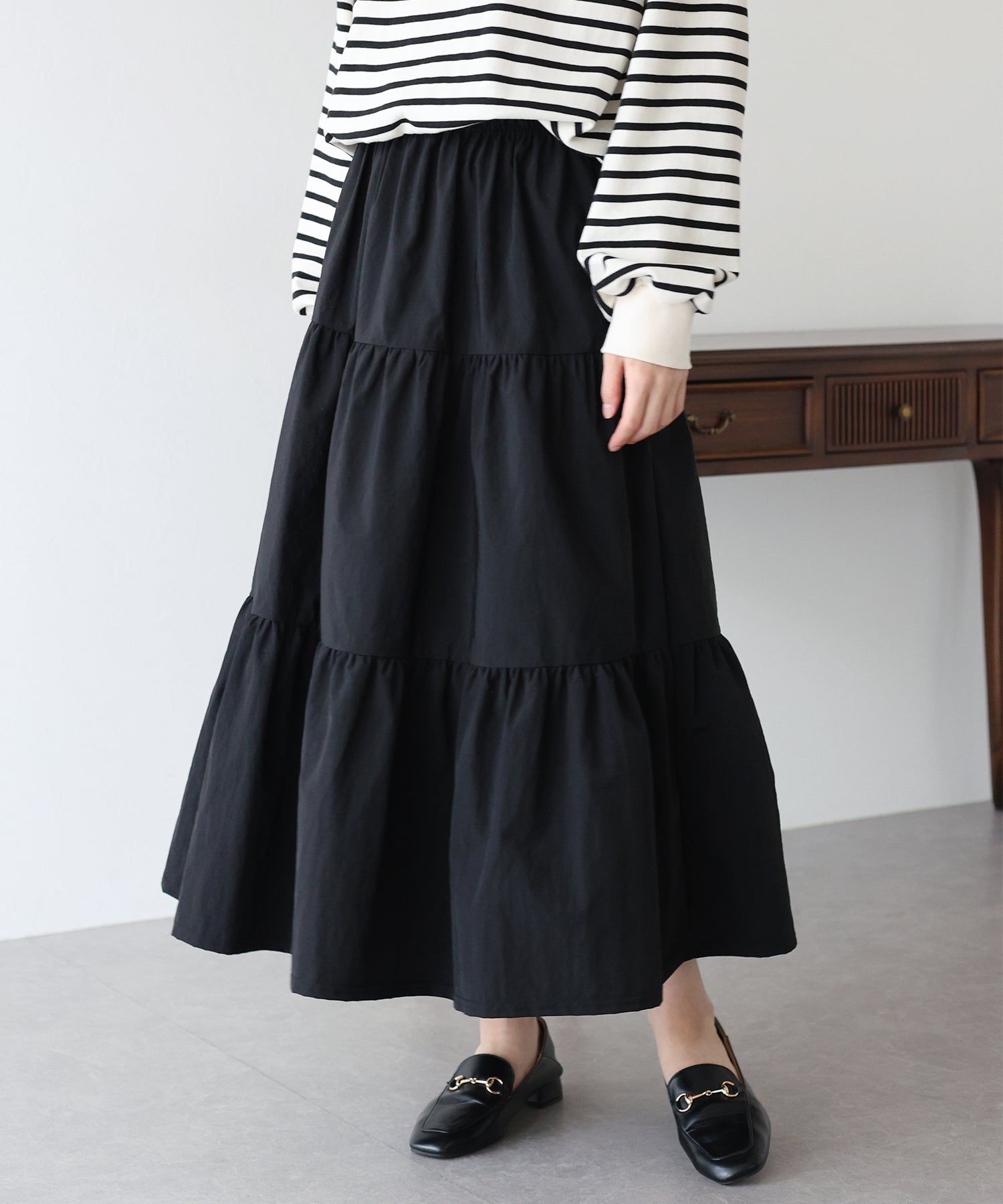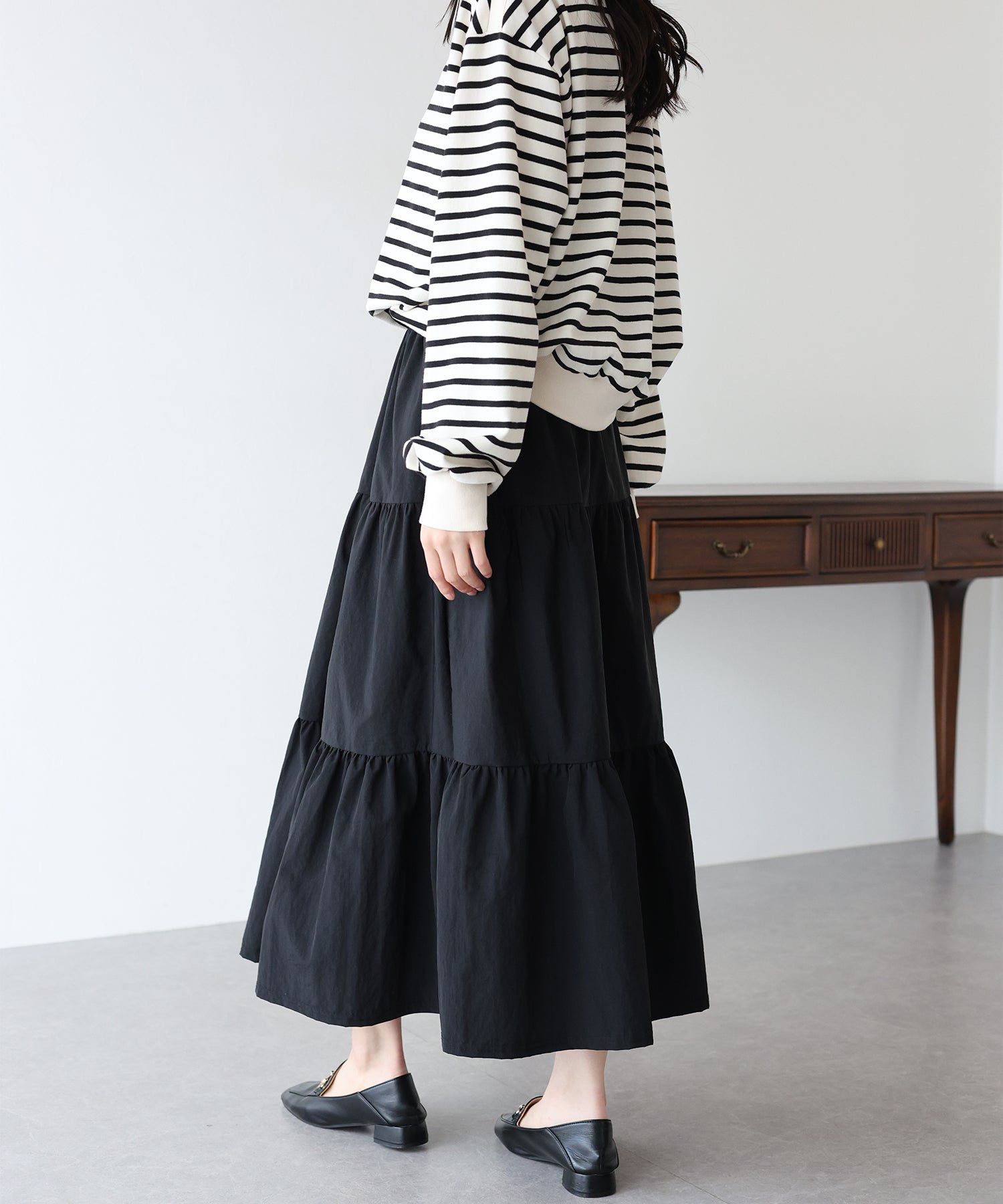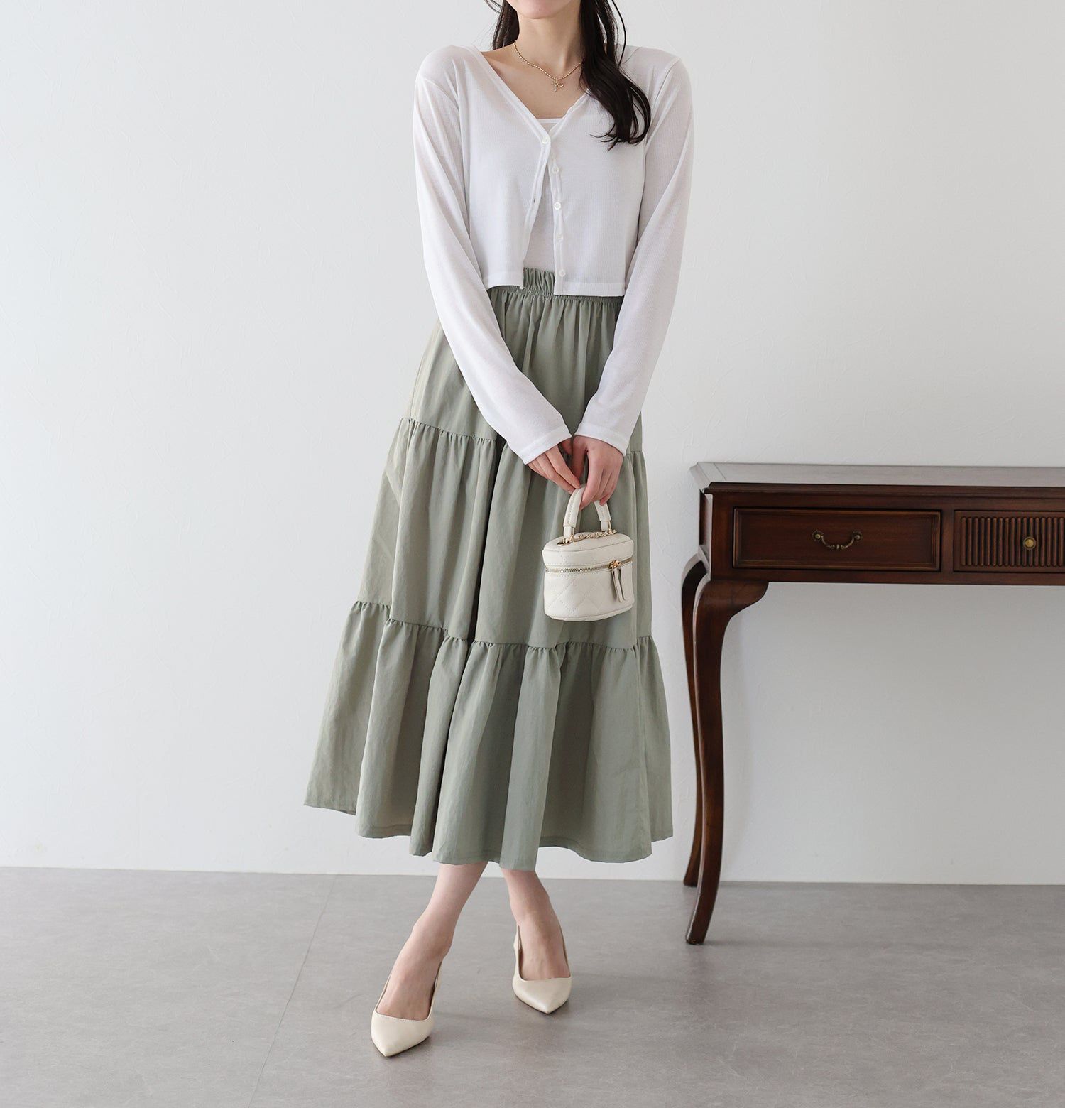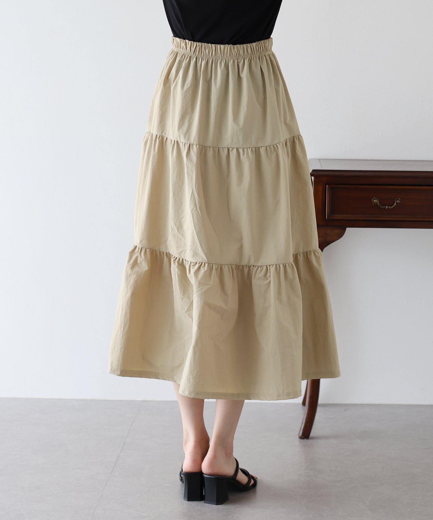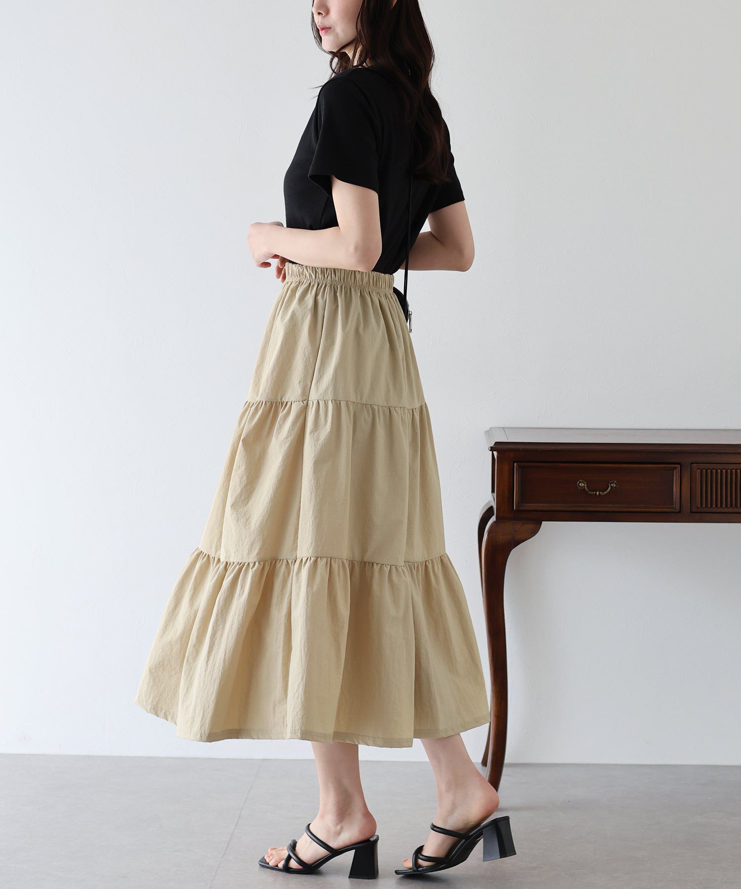 • 品名:輕盈感尼龍分層鬆緊長裙