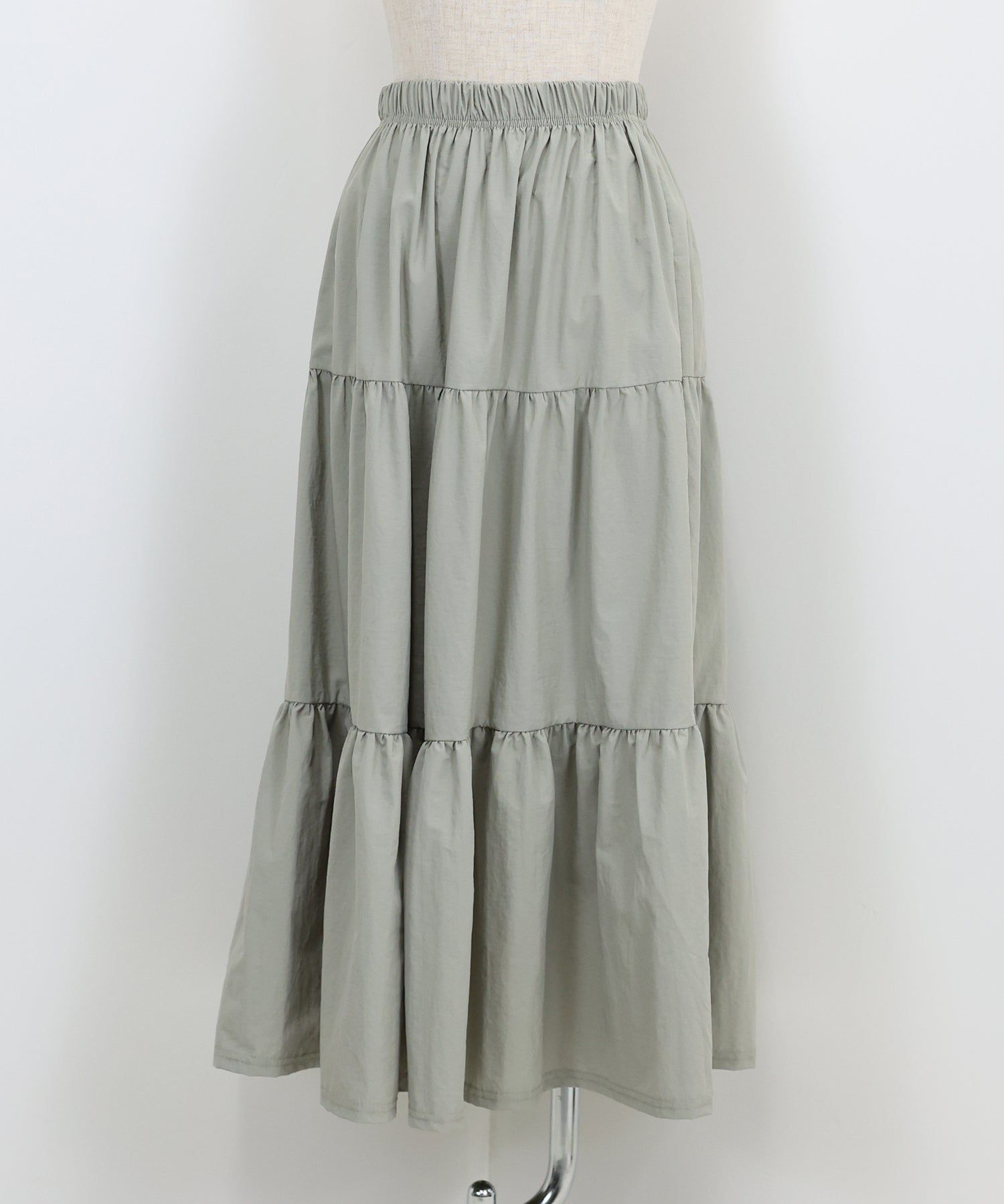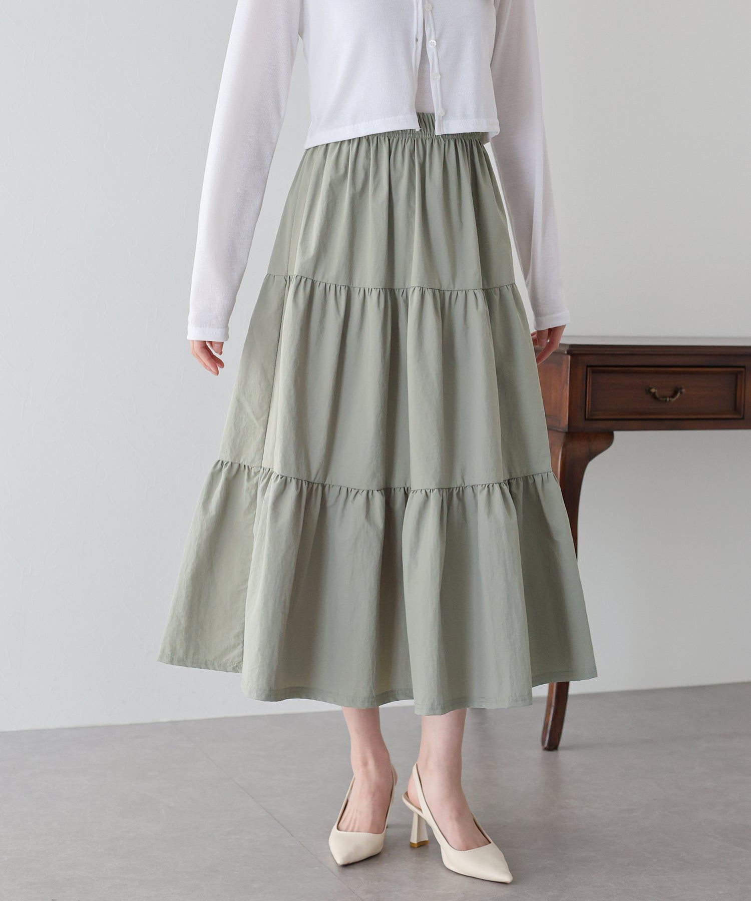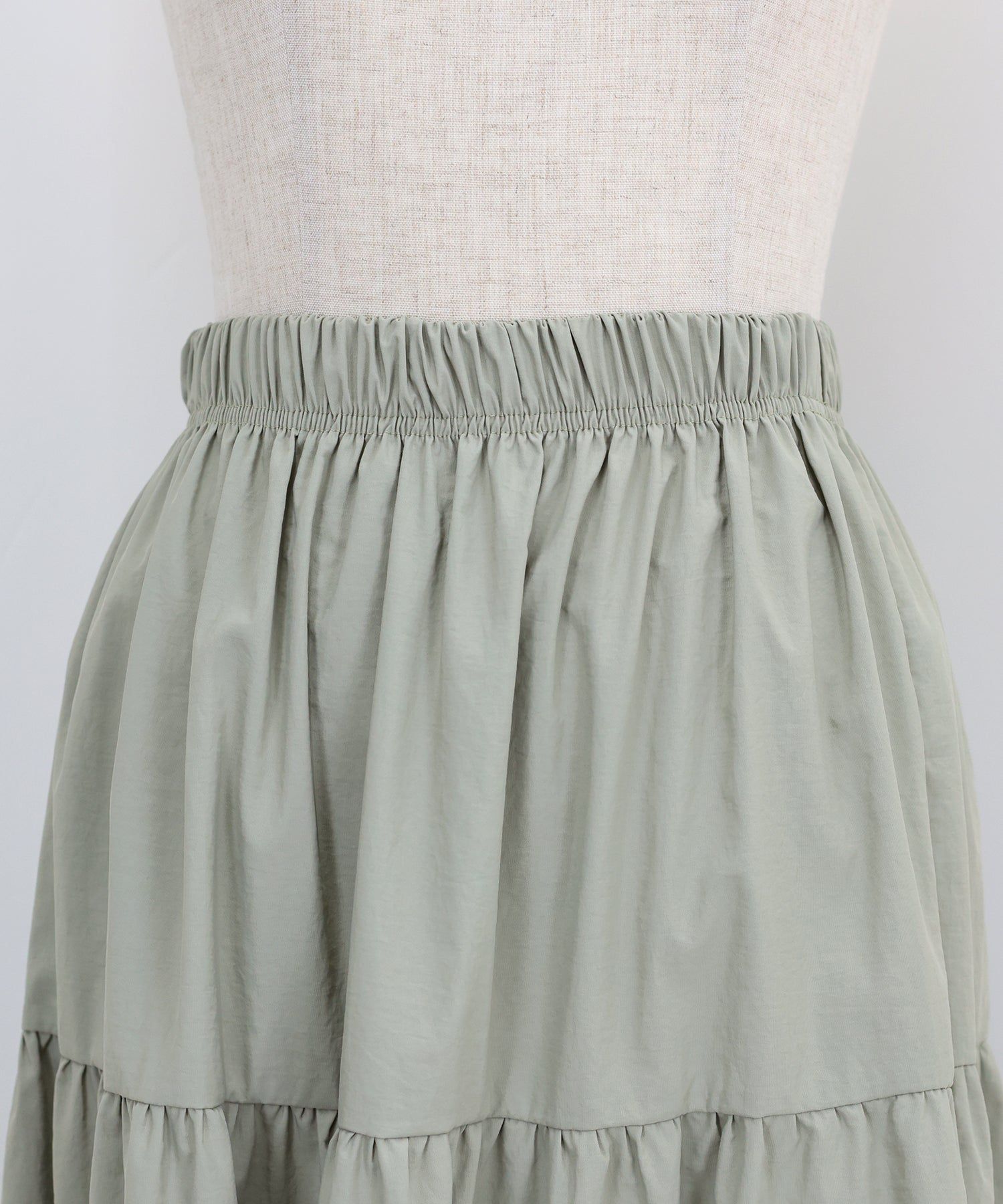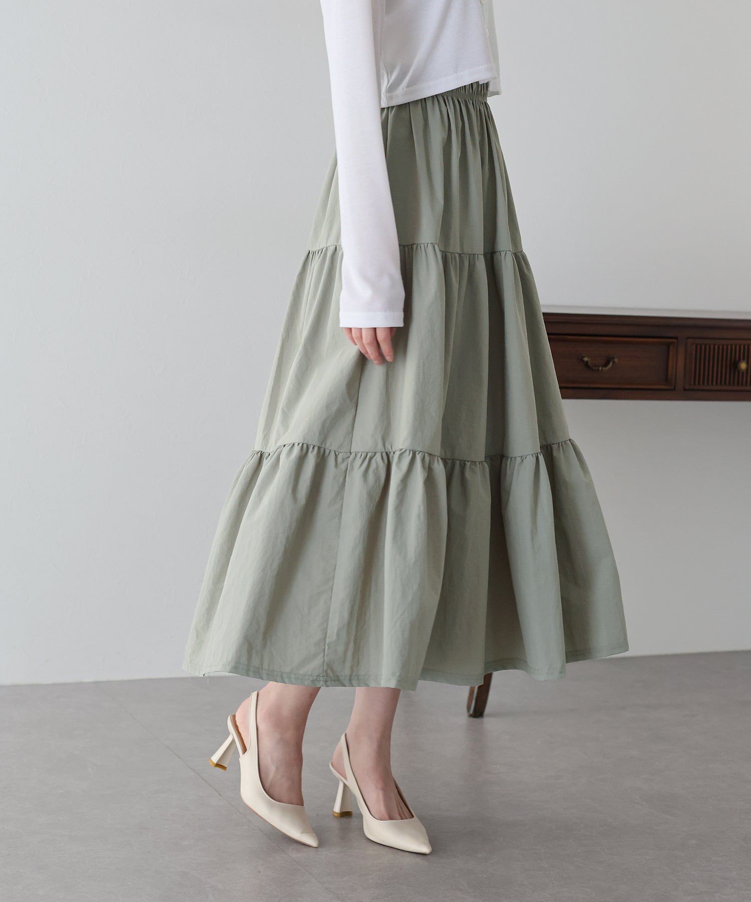 日本 BLUE EAST - 輕盈感尼龍分層鬆緊長裙-淺灰綠