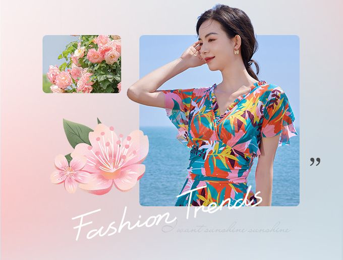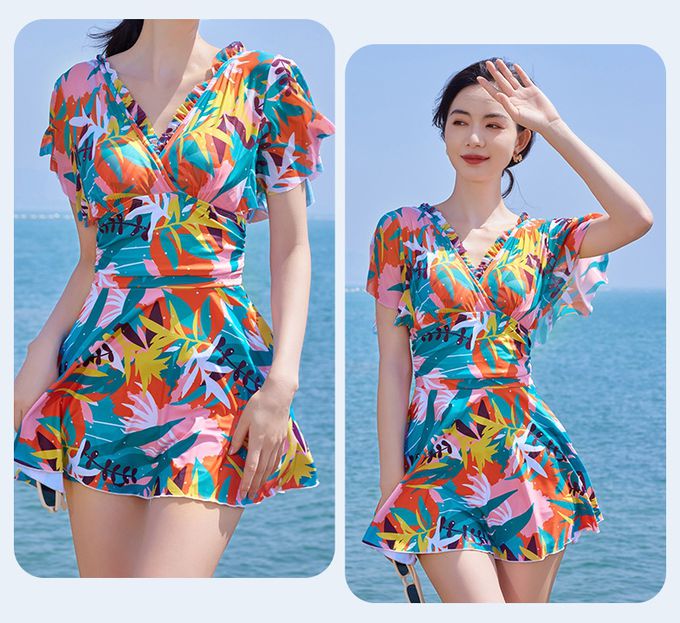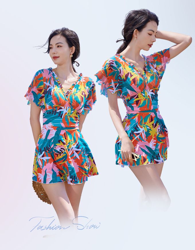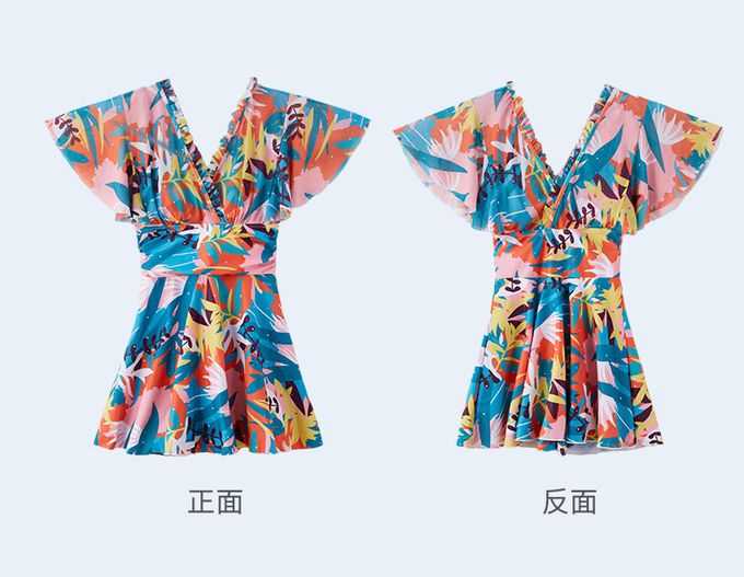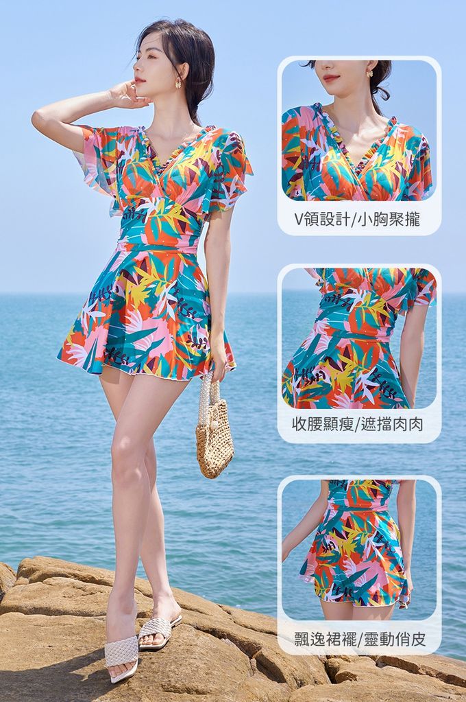 • 品名:V領顯瘦小飛袖連身裙泳衣