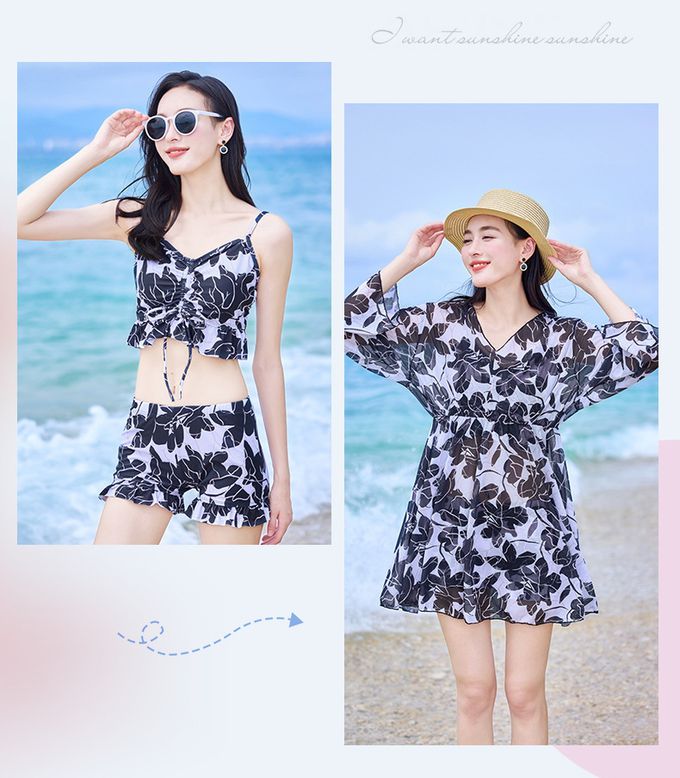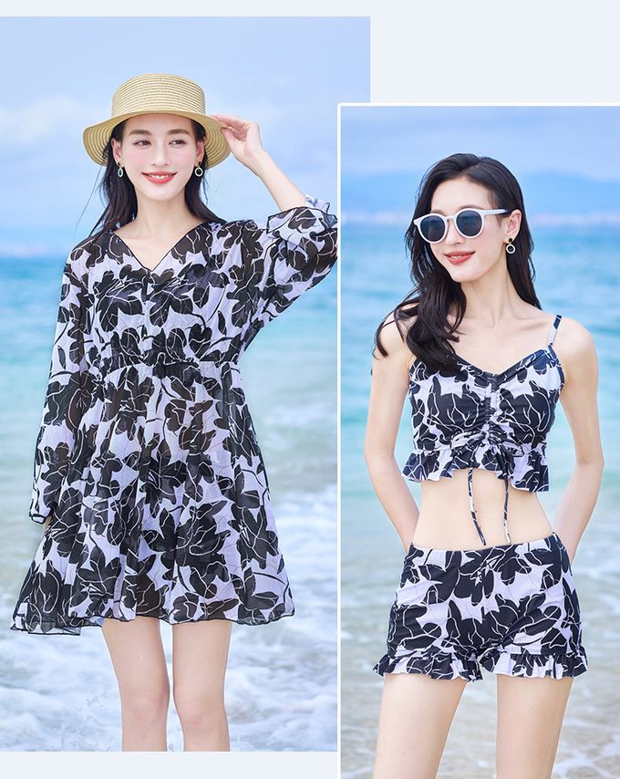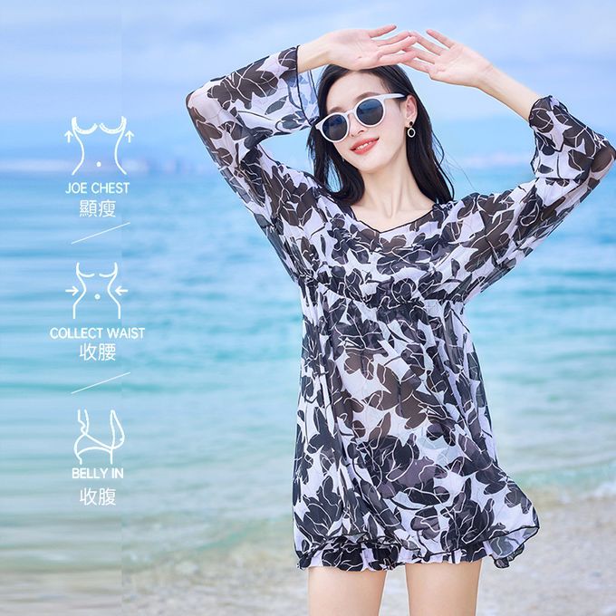 品名:修身顯瘦遮肉連身裙泳衣(三件組)