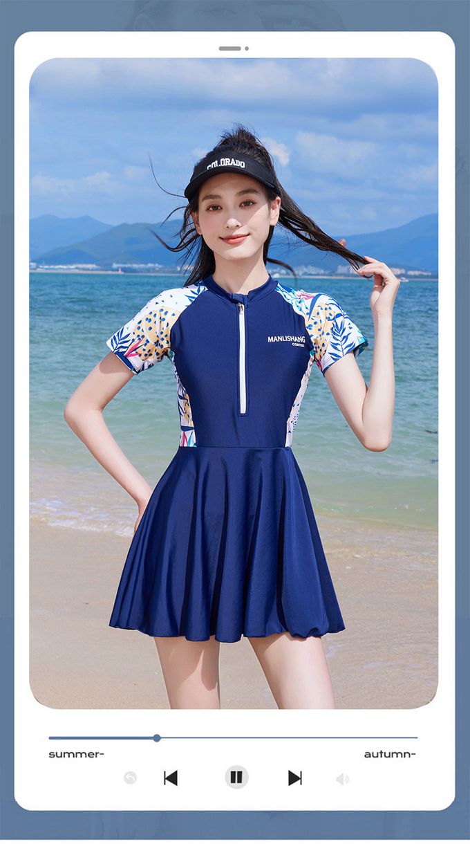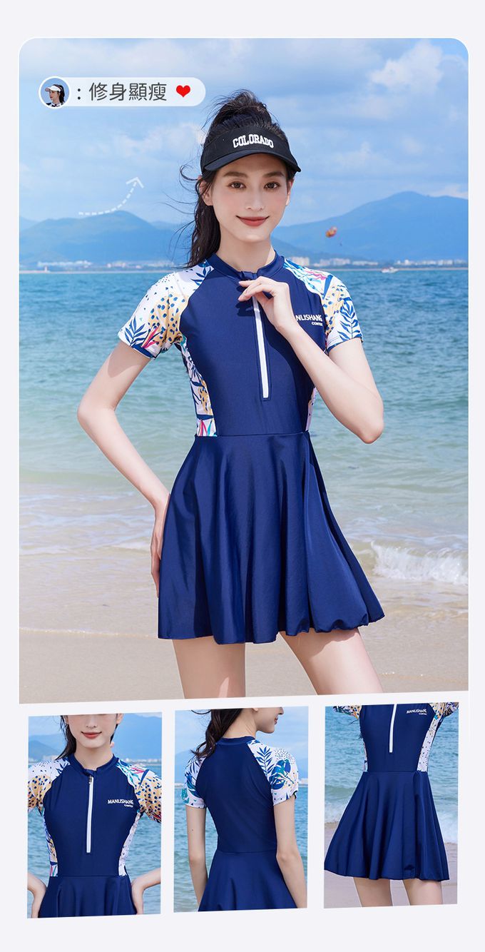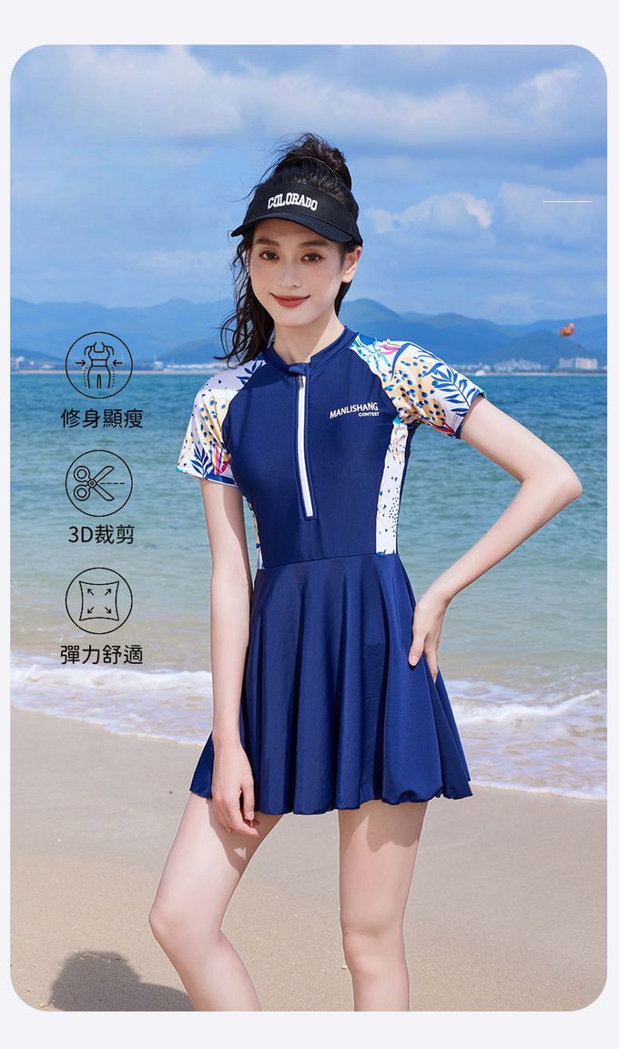• 品名:百搭修身顯瘦遮肉連身裙泳衣