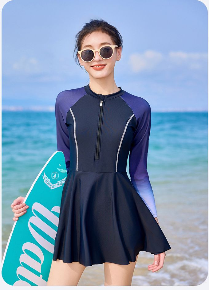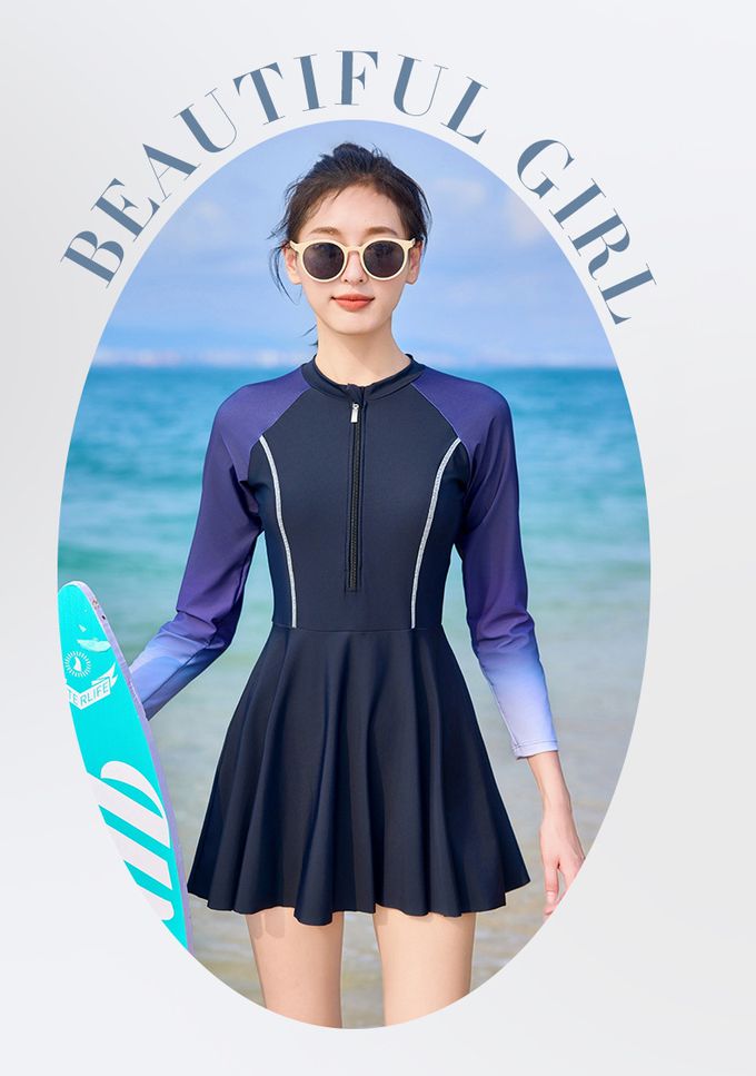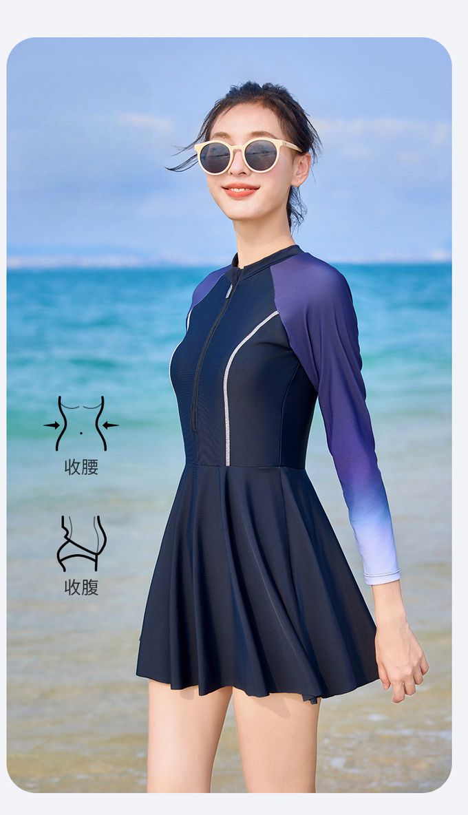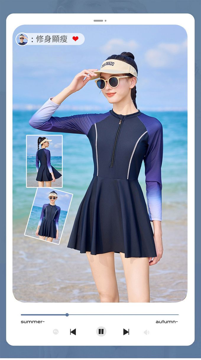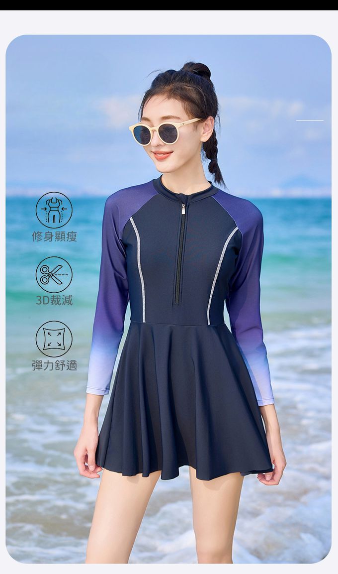 品名:百搭修身收腰顯瘦長袖防曬連身裙泳衣