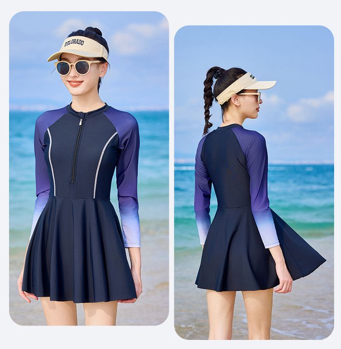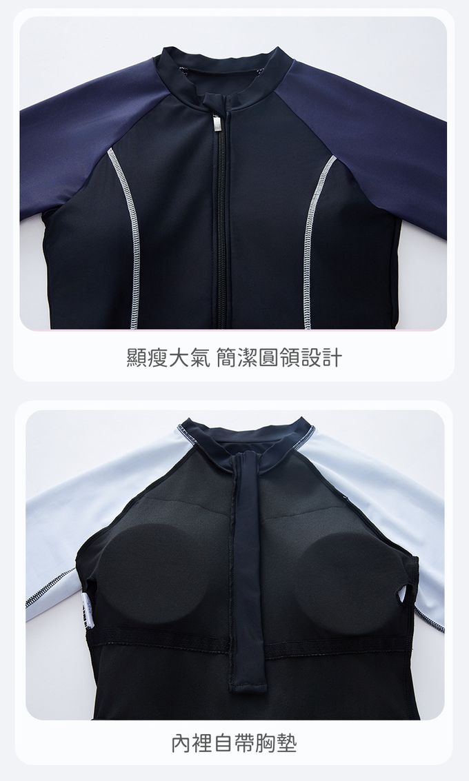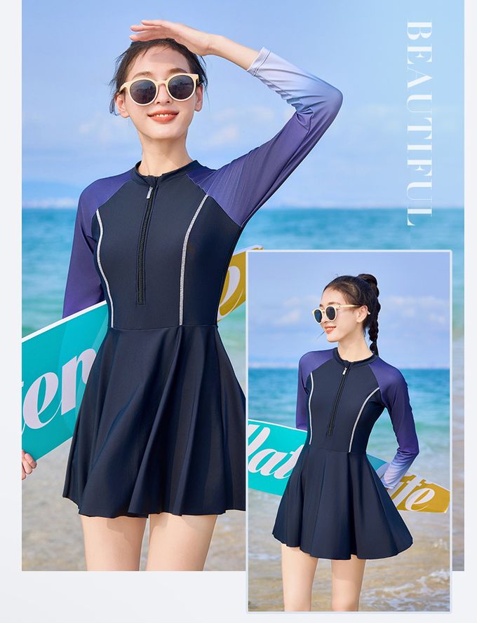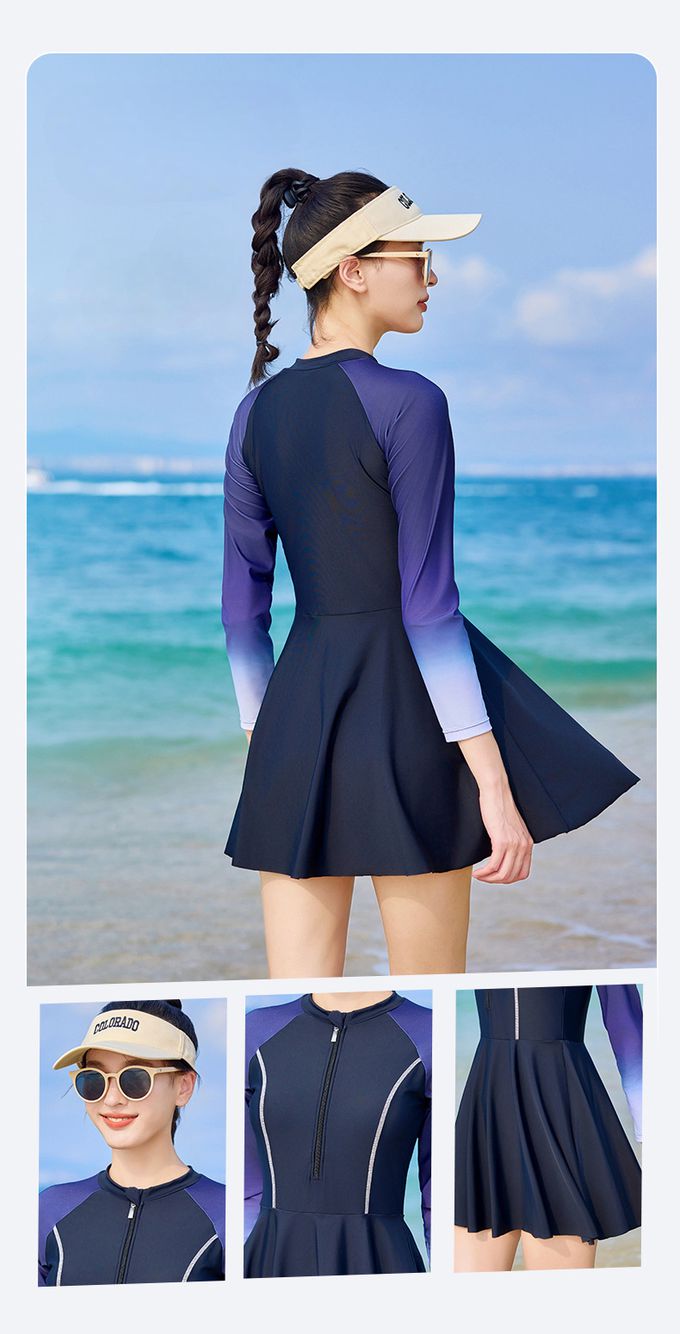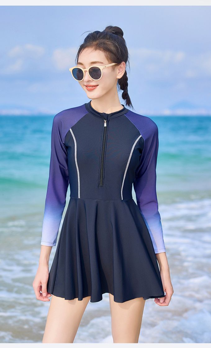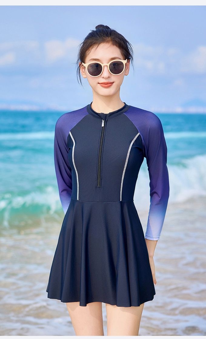 品名:百搭修身收腰顯瘦長袖防曬連身裙泳衣