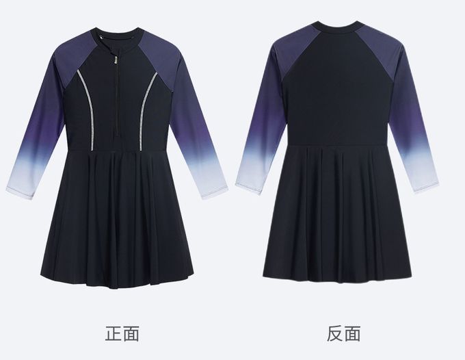 百搭修身收腰顯瘦長袖防曬連身裙泳衣-漸層紫
