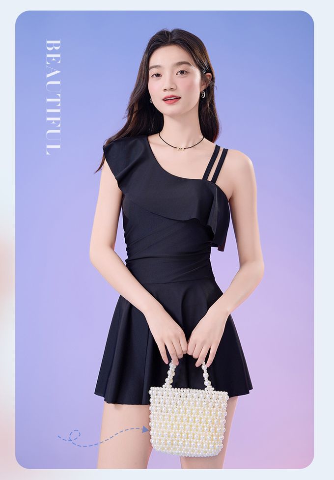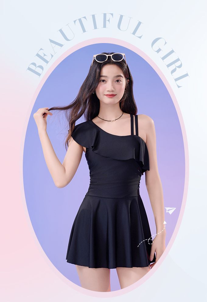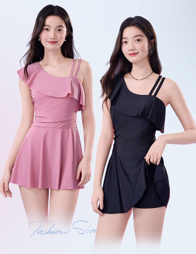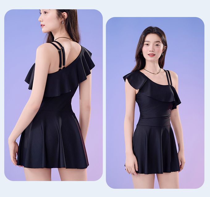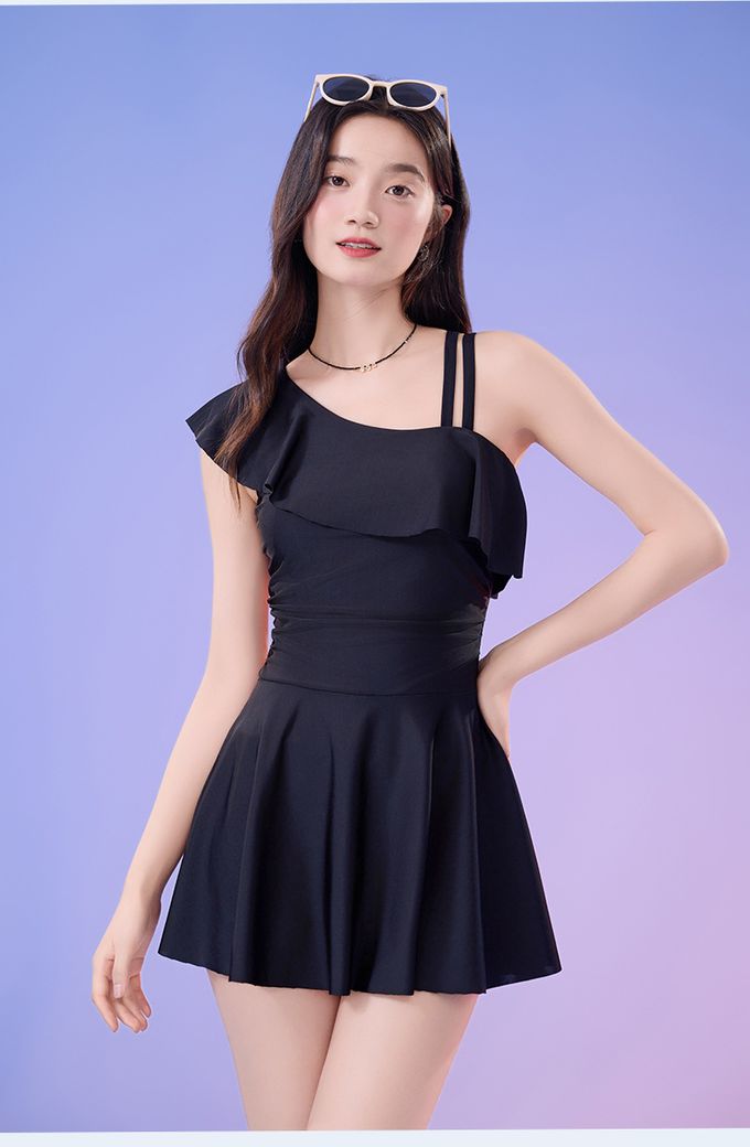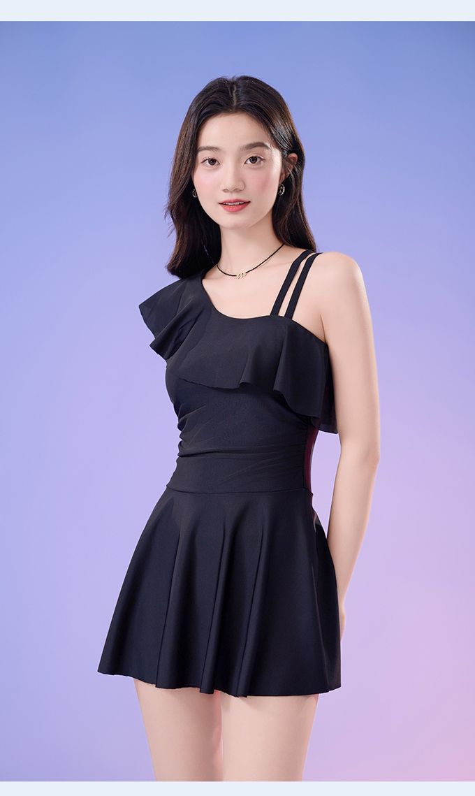 品名:單肩設計修身顯瘦遮肉連身裙泳衣