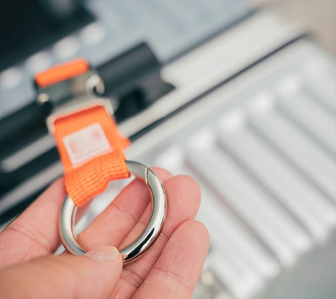 成分:重量:約50g 圓環尺寸:圈內直徑3cm 織帶長度:展開27cm 折疊18cm 材質:金屬+塑膠+聚酯織帶