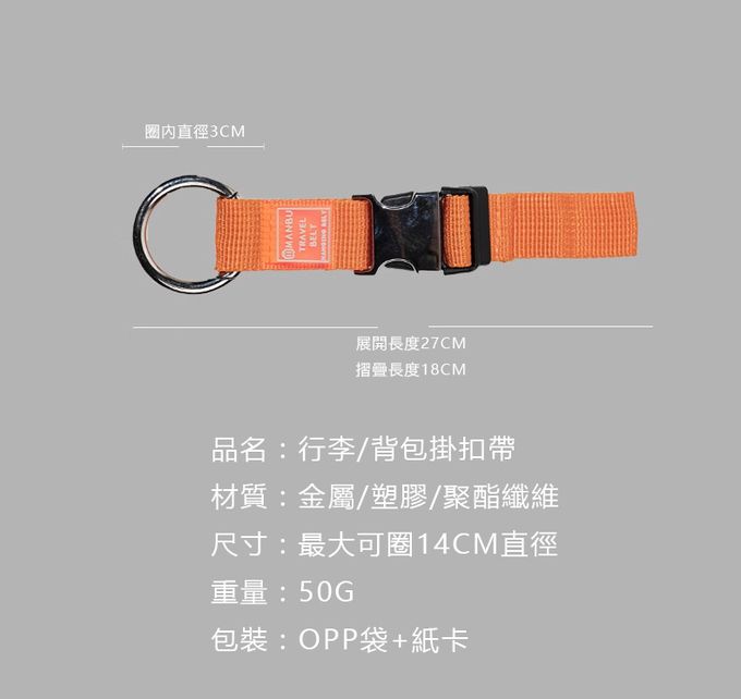 行李/背包掛扣帶-2入一組 (黑色+隨機色)