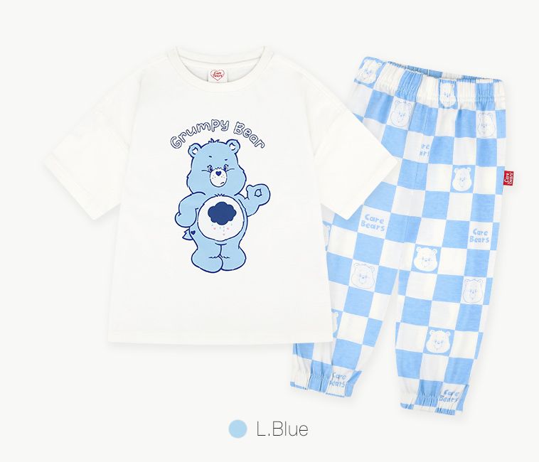 韓國 Care Bears - 聯名款Hi熊熊短袖上衣X長褲套裝-白X天藍