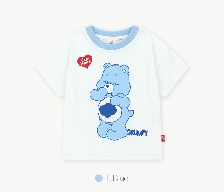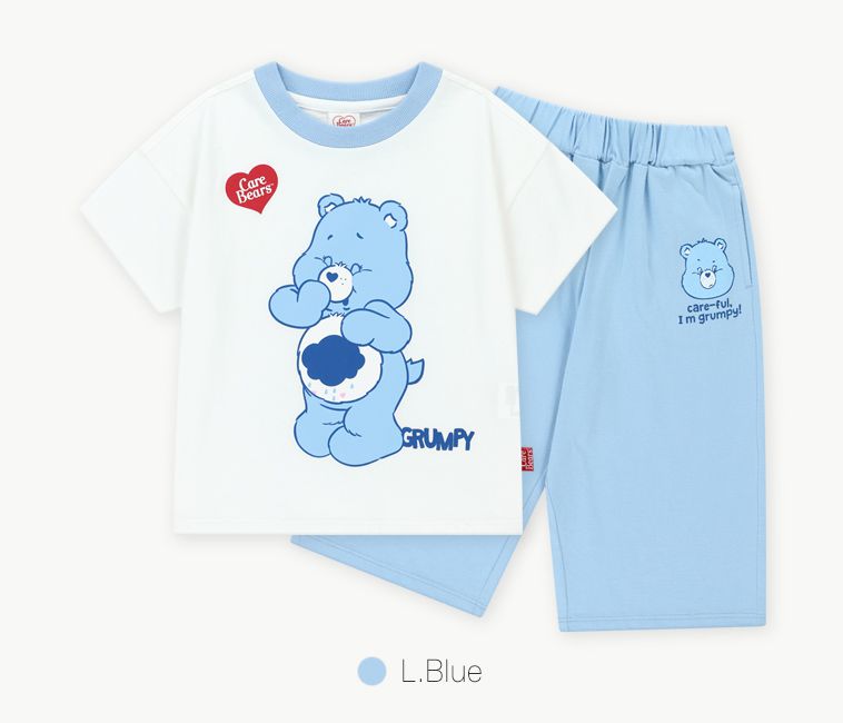 韓國 Care Bears - 聯名款偷笑熊熊短袖上衣X長褲套裝-白X天藍