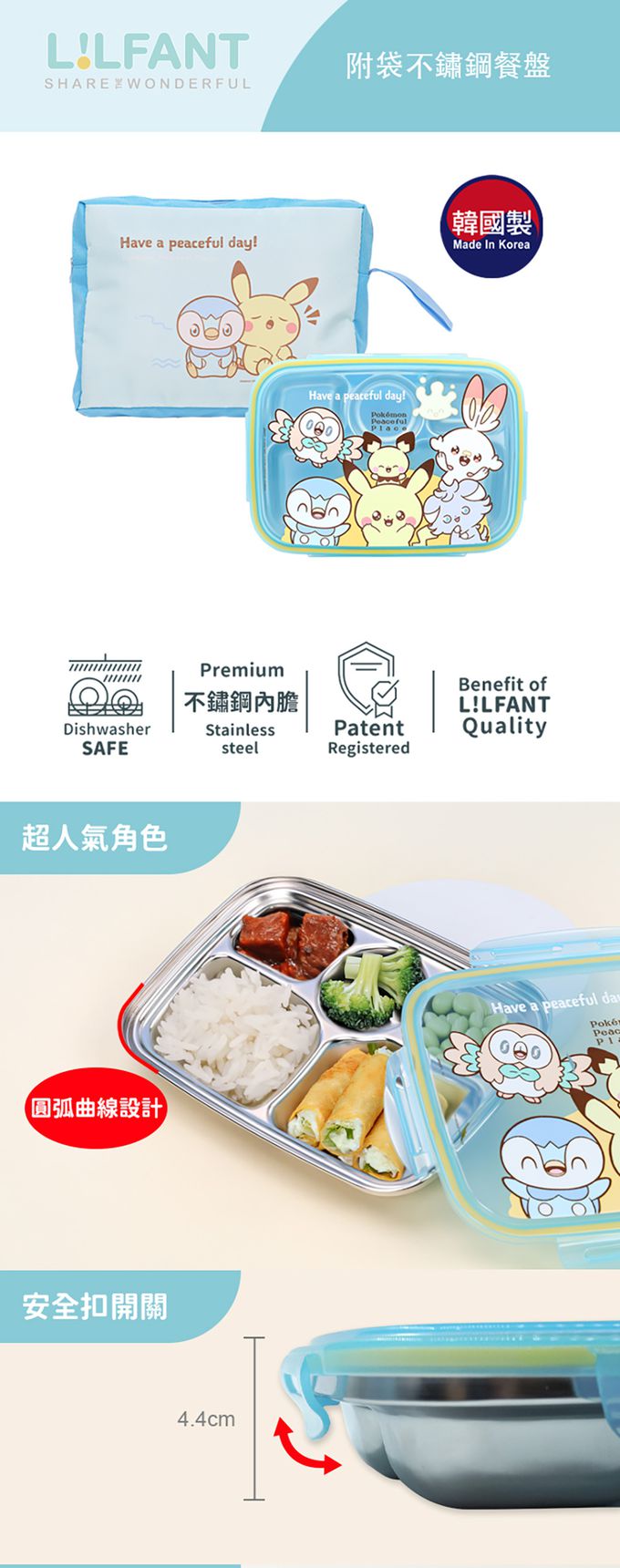 材質:餐盤-304不鏽鋼、上蓋-PP聚丙烯、墊圈-矽膠Silicone、外袋-聚酯纖維