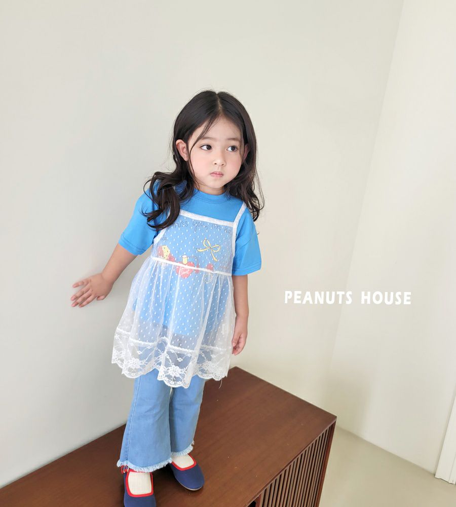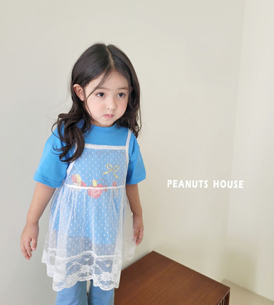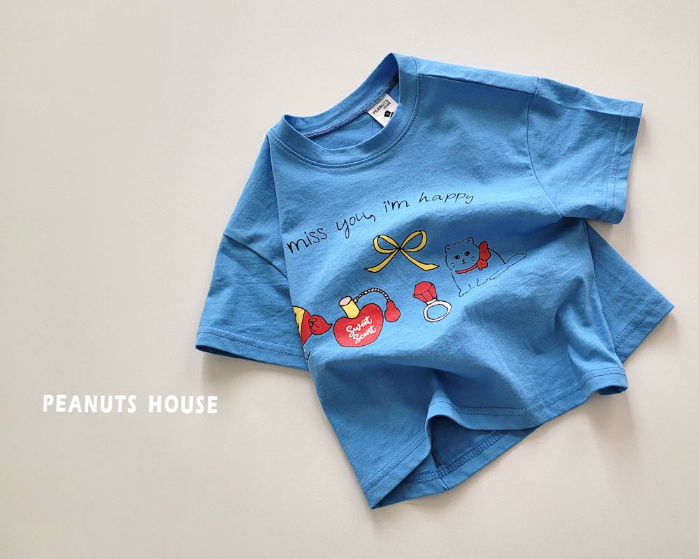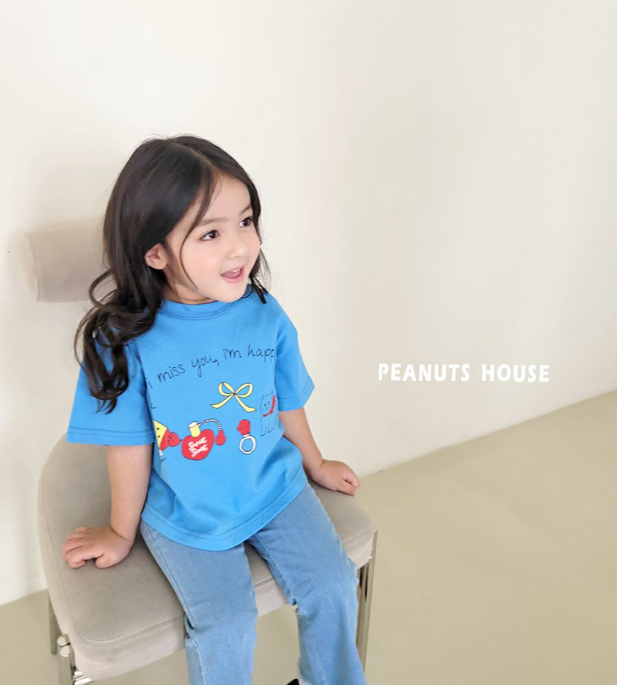韓國 Peanuts House - 手繪圖案短袖上衣-藍