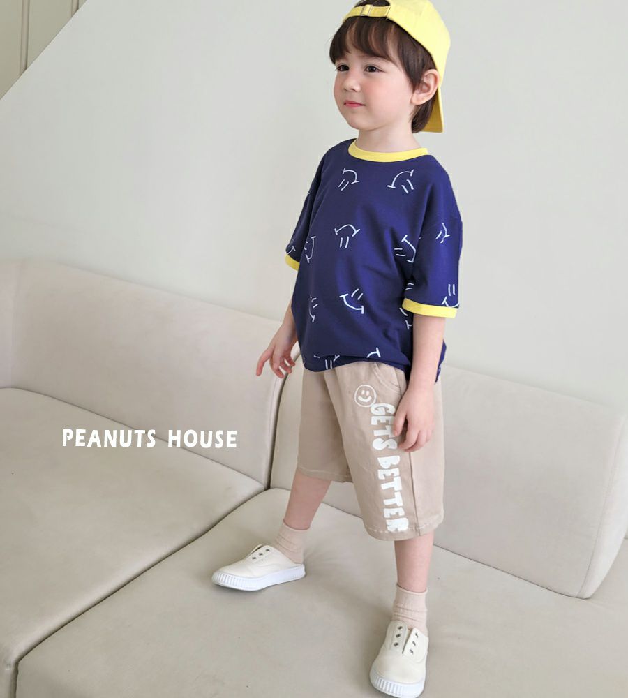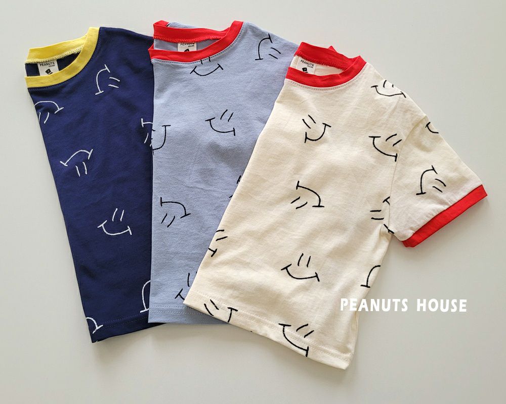 韓國 Peanuts House - 滿版小笑臉短袖上衣