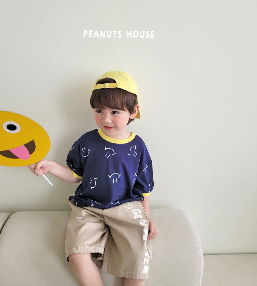 韓國 Peanuts House - 滿版小笑臉短袖上衣-海軍藍