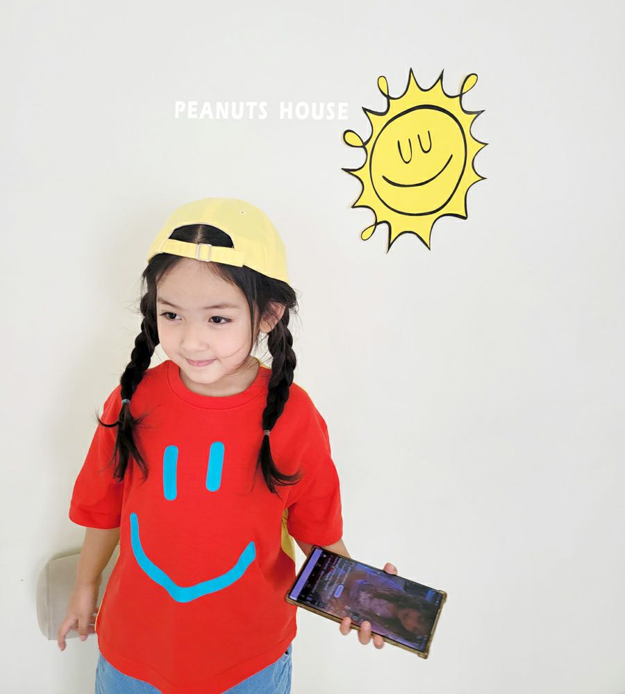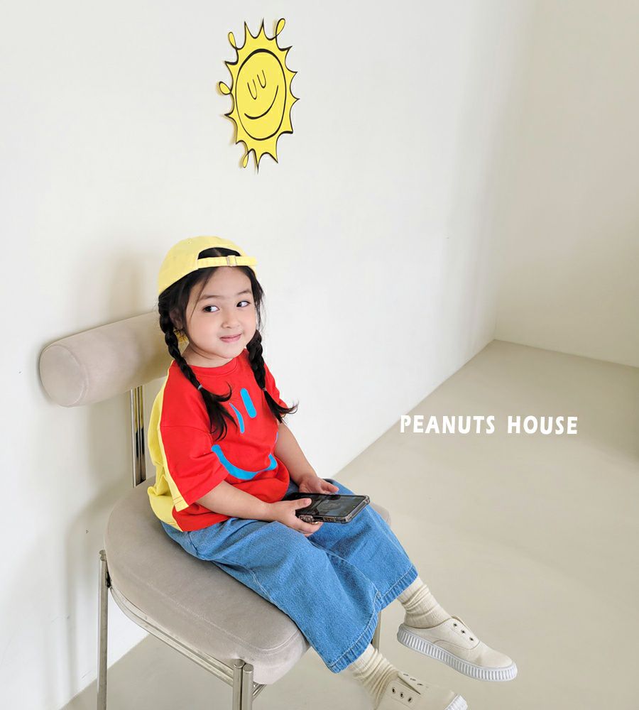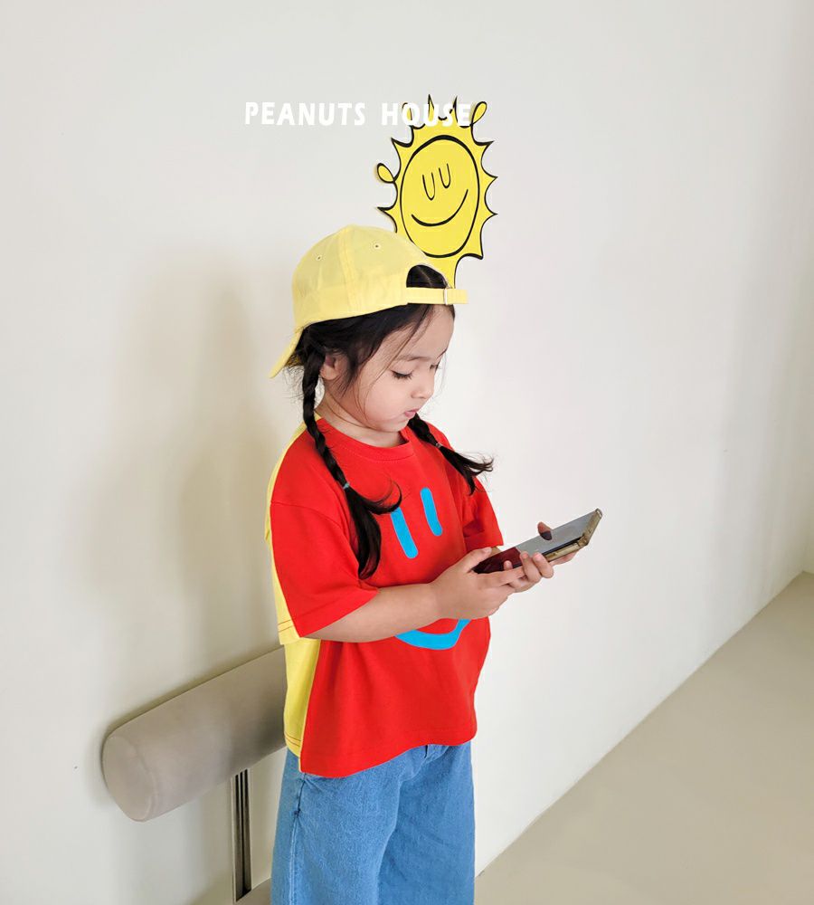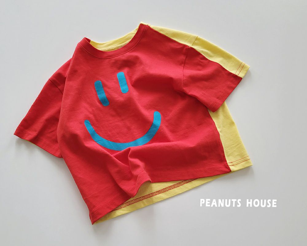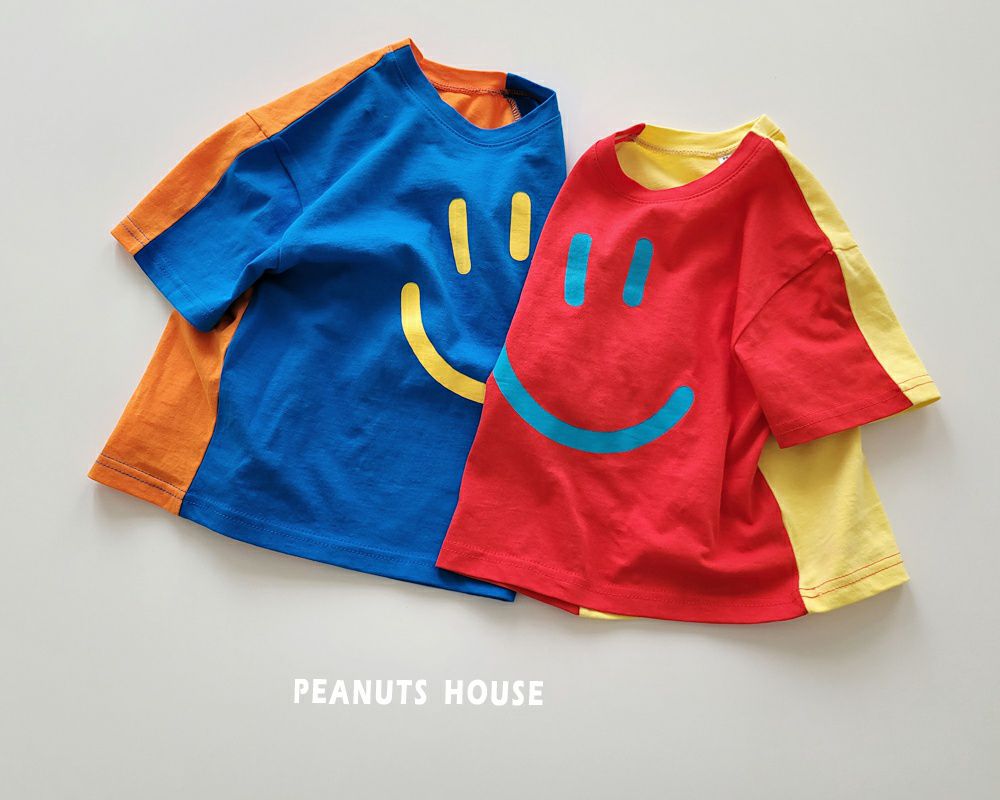 韓國 Peanuts House - 大笑臉撞色短袖上衣