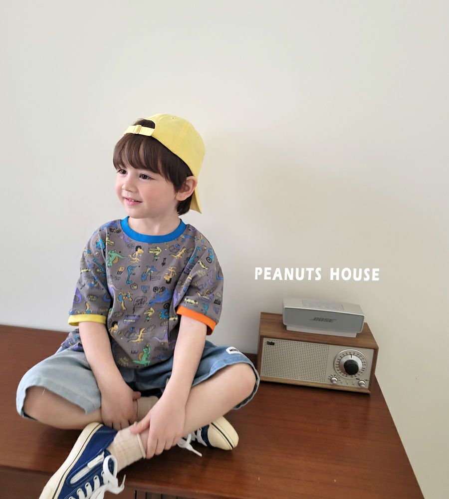韓國 Peanuts House - 漫畫小恐龍短袖上衣-深灰