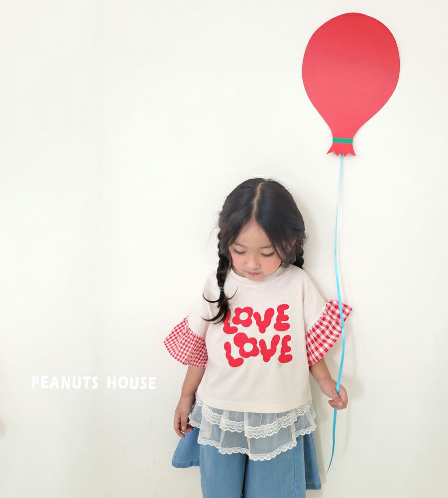 韓國 Peanuts House - LOVE糖果格紋拼袖上衣