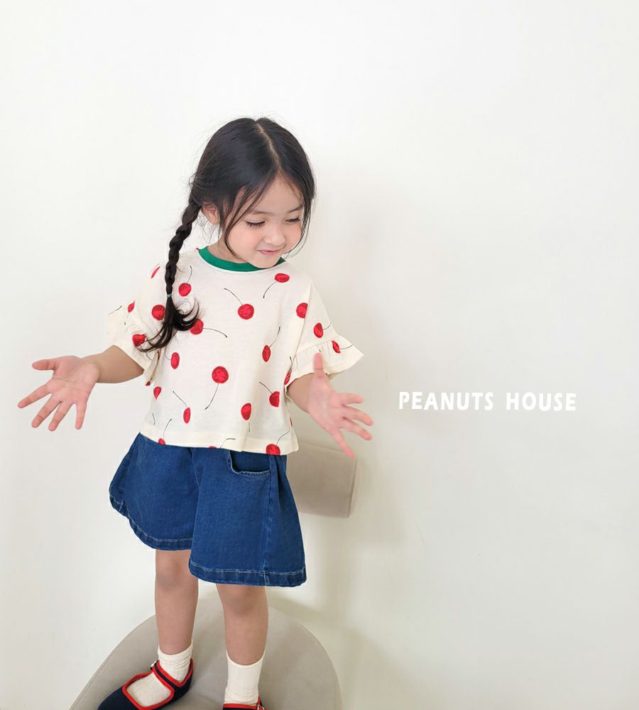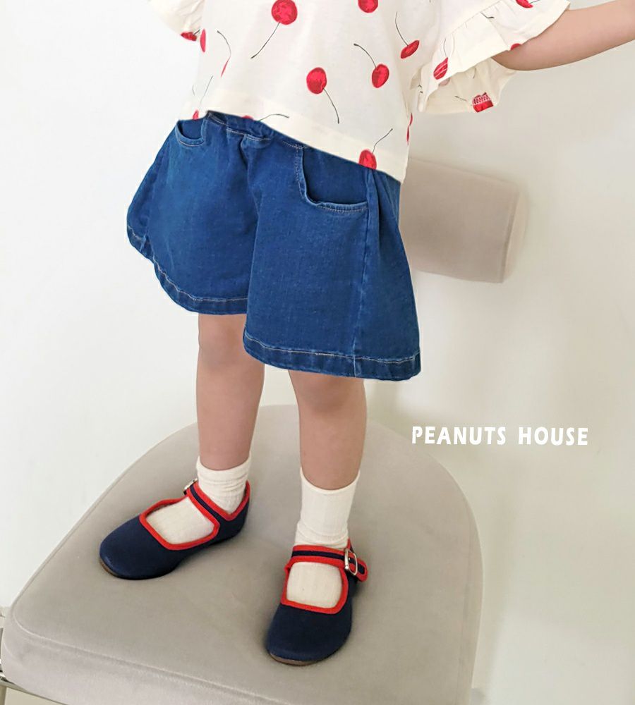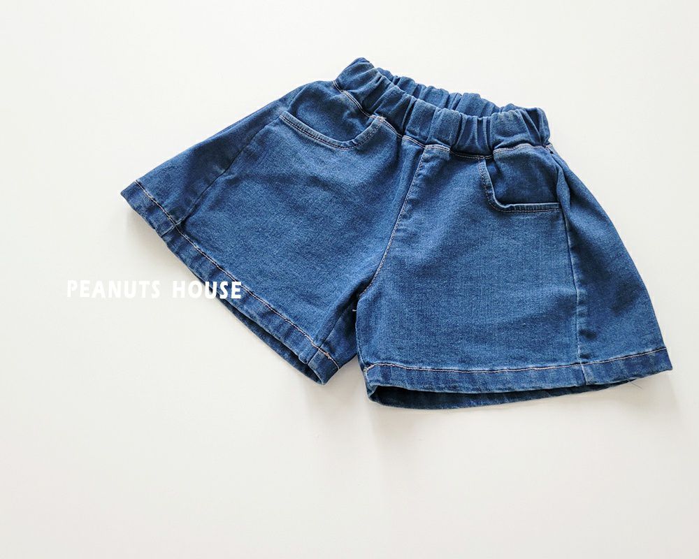 韓國 Peanuts House - 鬆緊腰寬版牛仔短褲