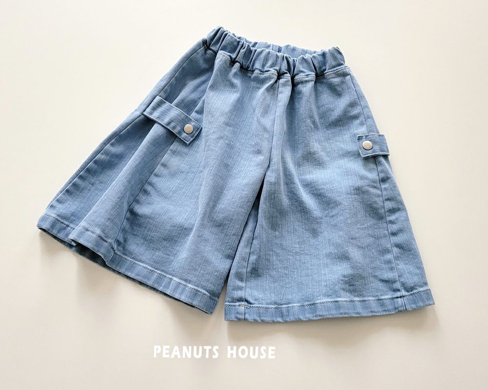 韓國 Peanuts House - 鬆緊腰牛仔8分寬褲-淺藍