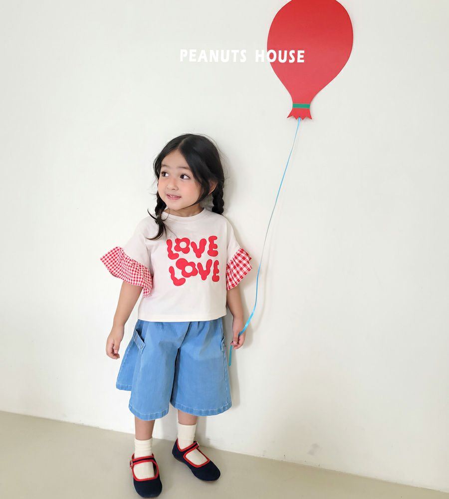 韓國 Peanuts House - 鬆緊腰牛仔8分寬褲