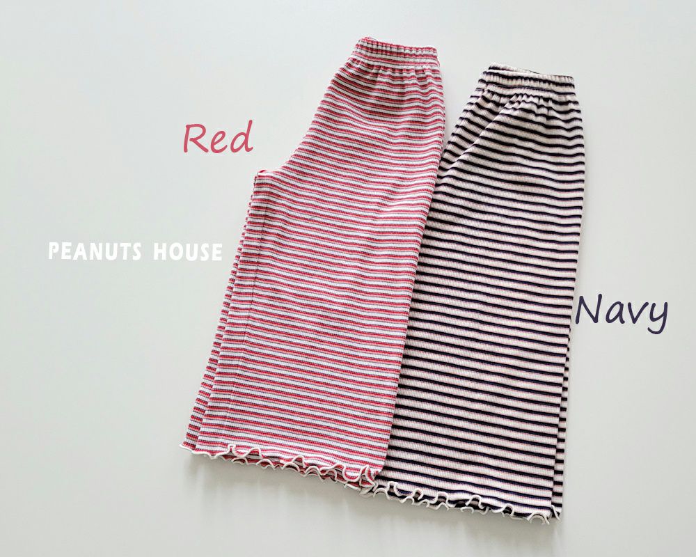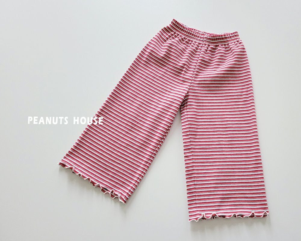 韓國 Peanuts House - 鬆緊腰條紋舒適寬褲-紅
