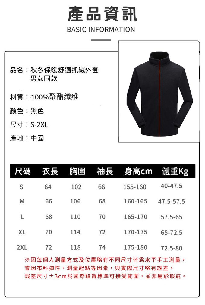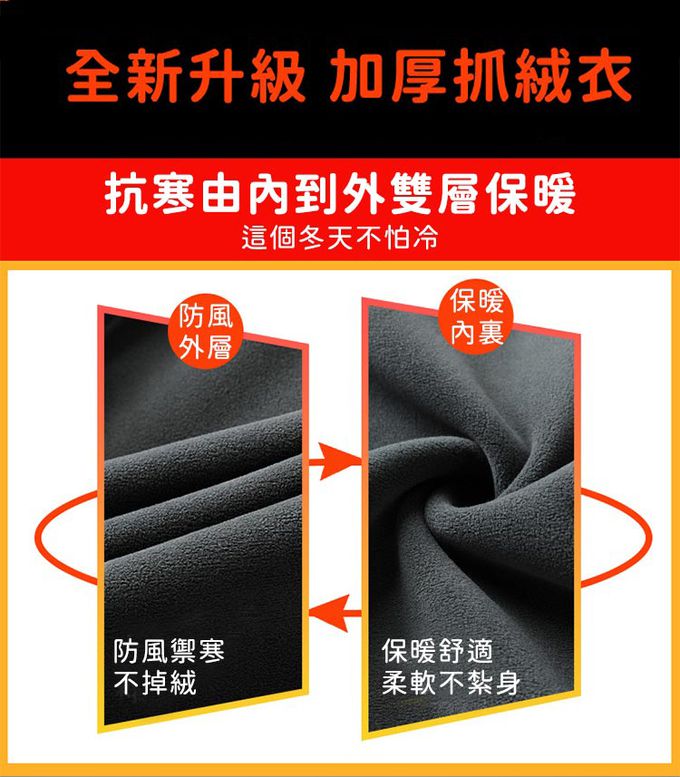 品名:秋冬保暖舒適抓絨外套/男女同款-黑色