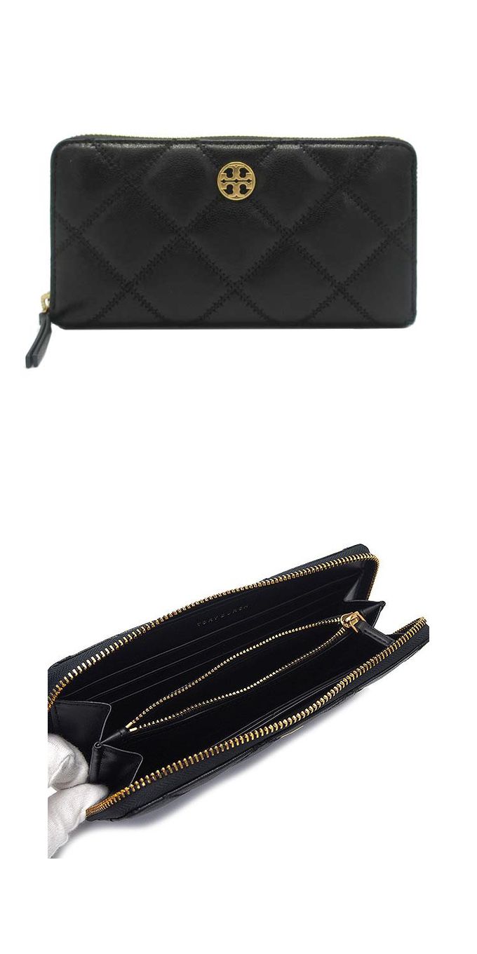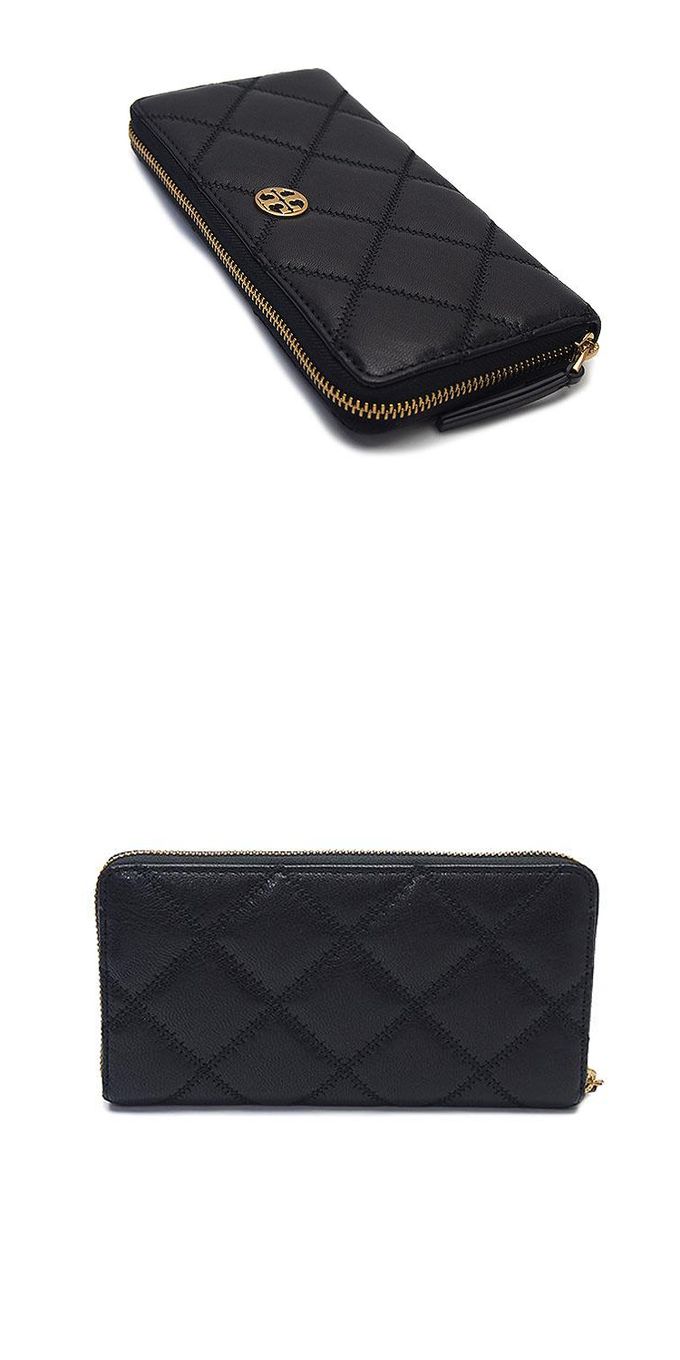 羊皮皮革菱格紋質感拉鍊長夾 (黑)