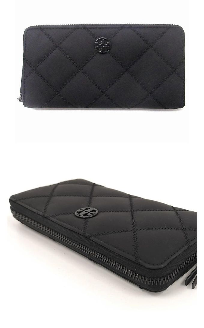 高質感霧面菱格紋全黑圓標LOGO長夾 (黑)