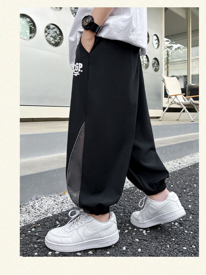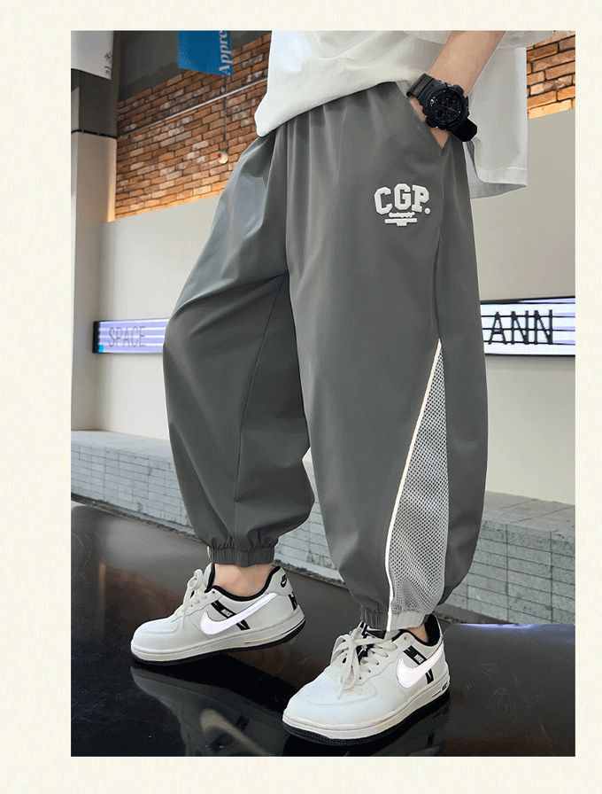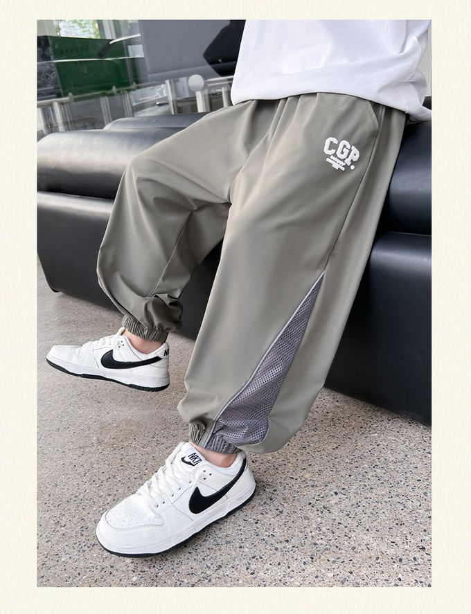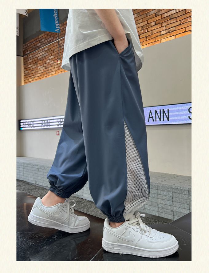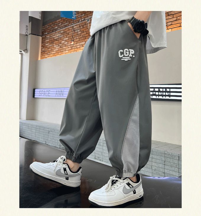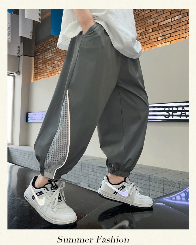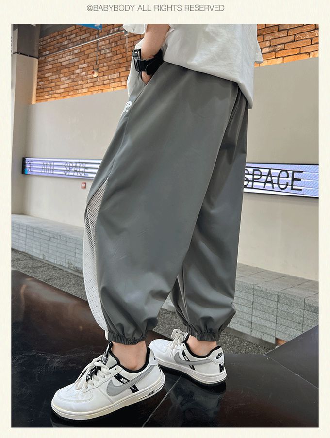 babybody - 腰鬆緊休閒束口長褲/防蚊褲-拼接透氣網格-深灰