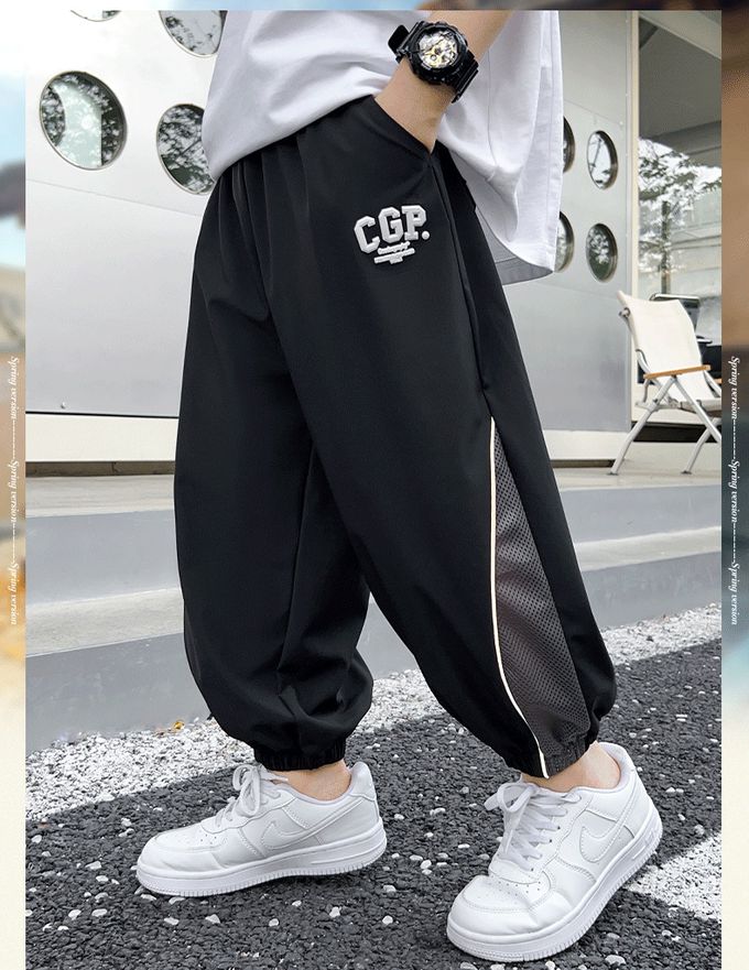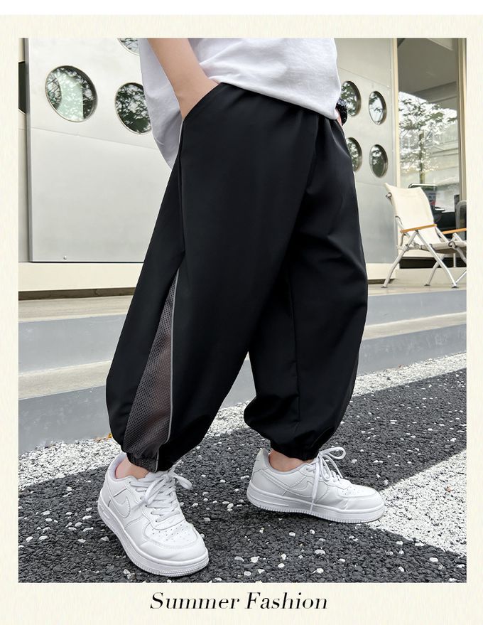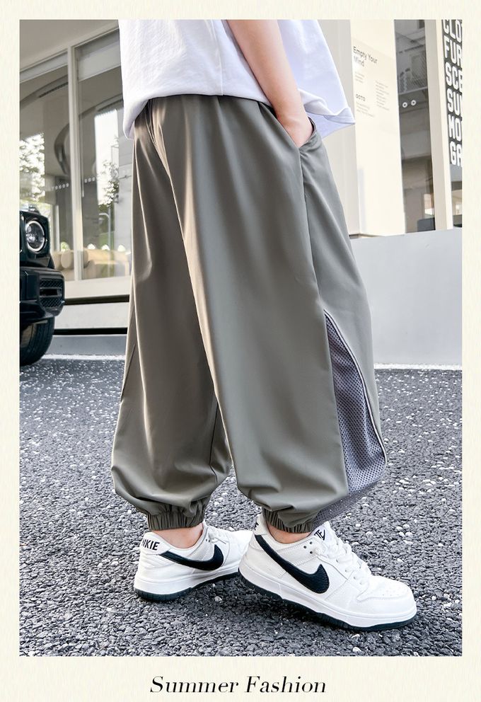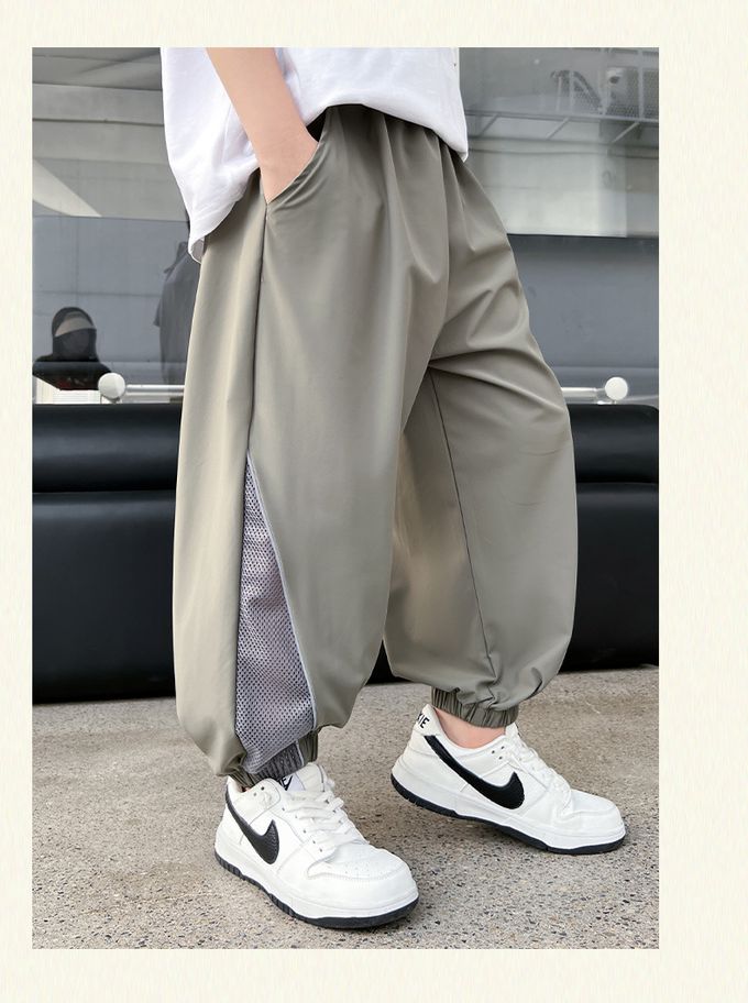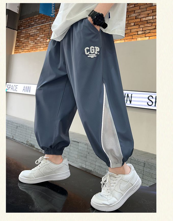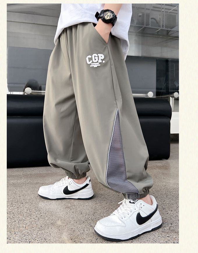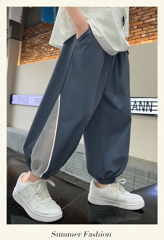 babybody - 腰鬆緊休閒束口長褲/防蚊褲-拼接透氣網格-深灰