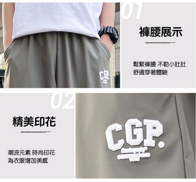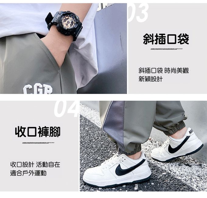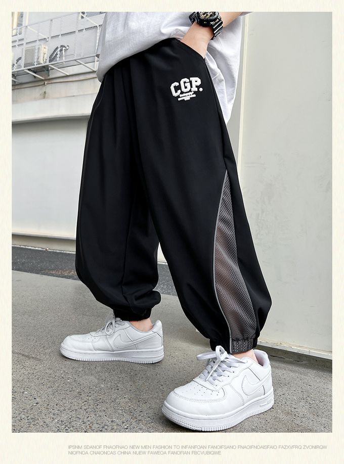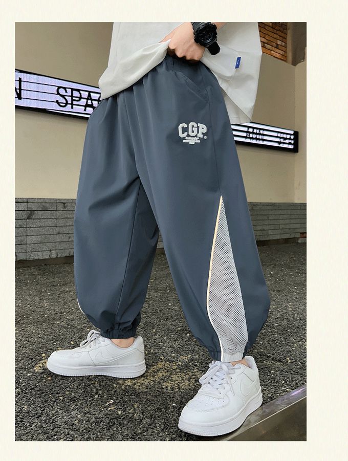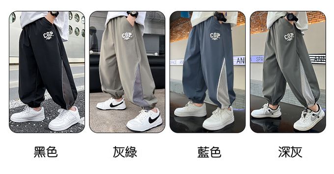腰鬆緊休閒束口長褲/防蚊褲-拼接透氣網格-深灰
