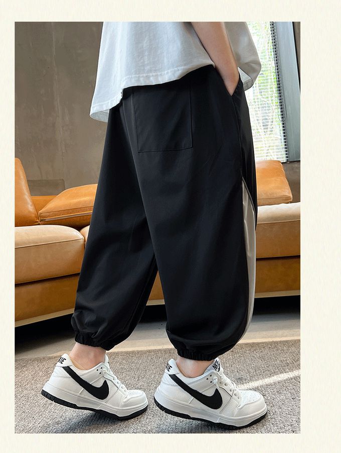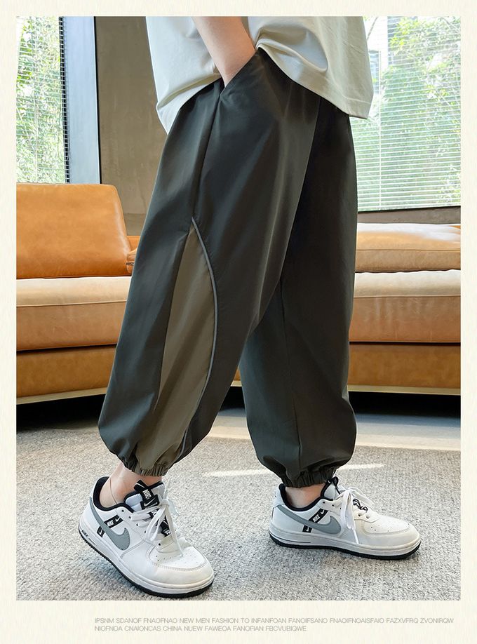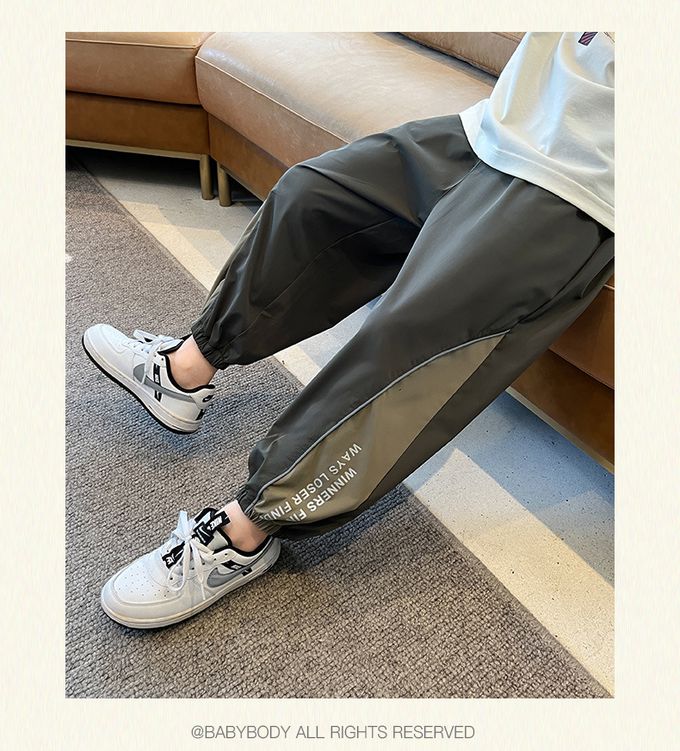 babybody - 腰鬆緊休閒束口長褲/防蚊褲-拼接透氣網格-深灰