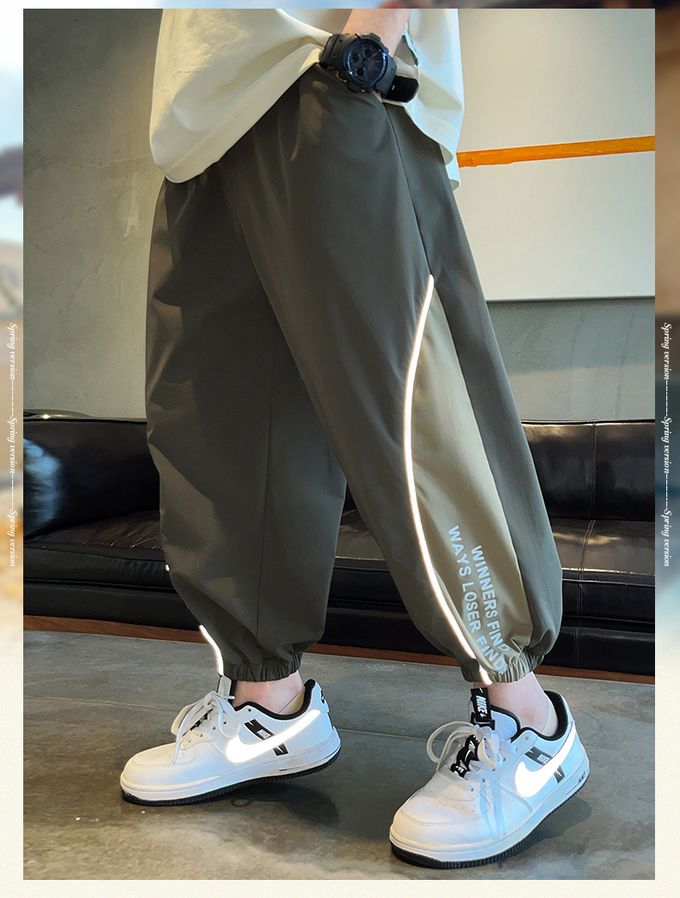 腰鬆緊休閒束口長褲/防蚊褲-反光線條-軍綠