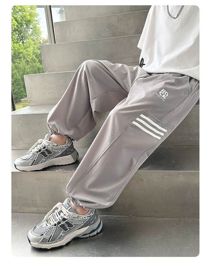 babybody - 腰鬆緊休閒束口長褲/防蚊褲-拼接透氣網格-深灰