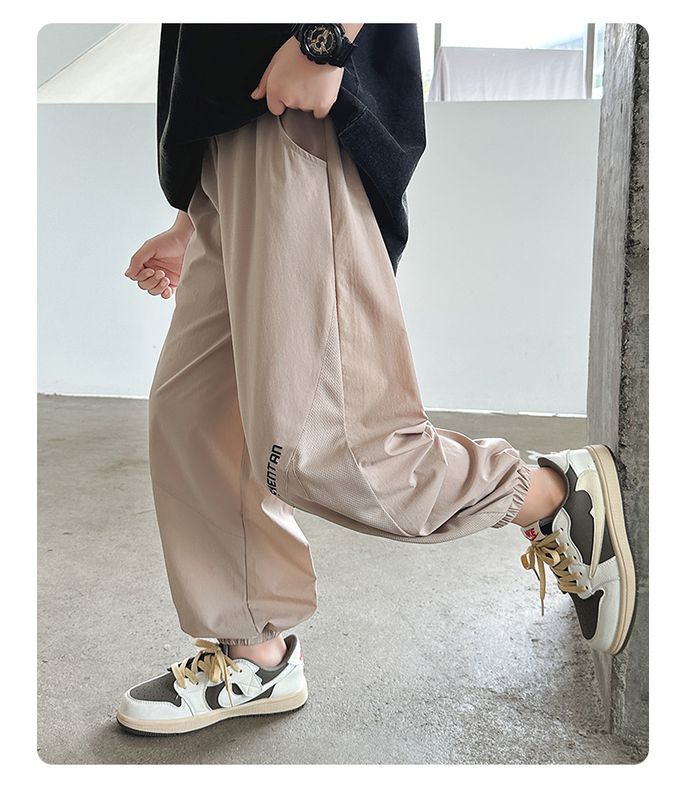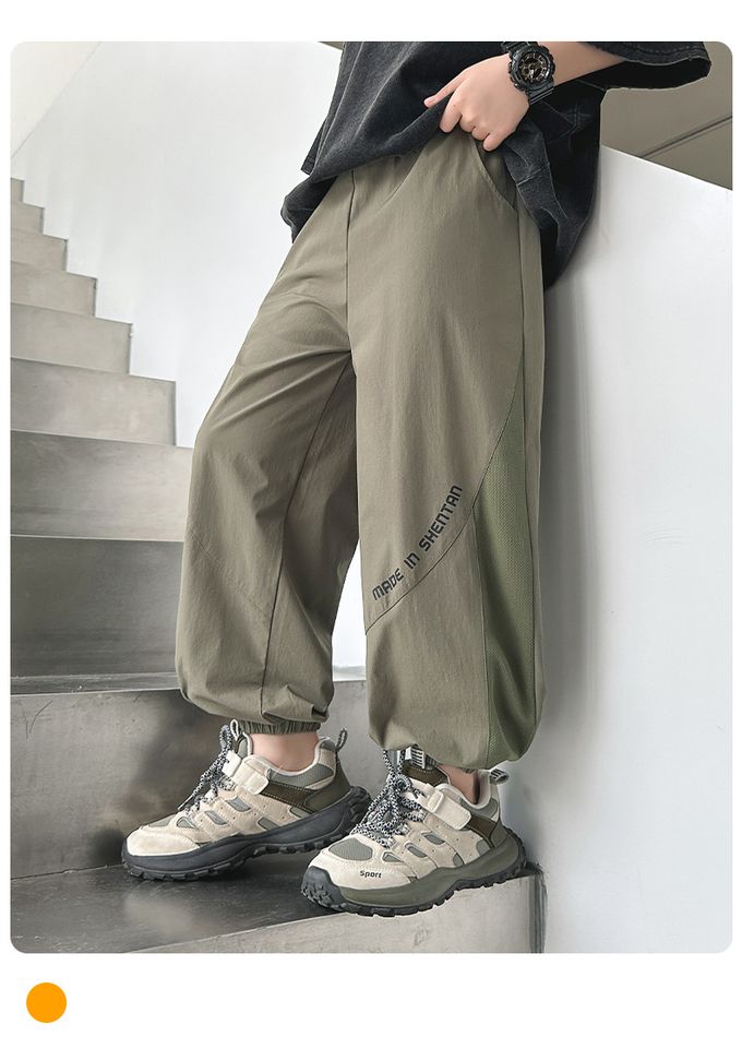 babybody - 腰鬆緊休閒束口長褲/防蚊褲-拼接透氣網格-深灰