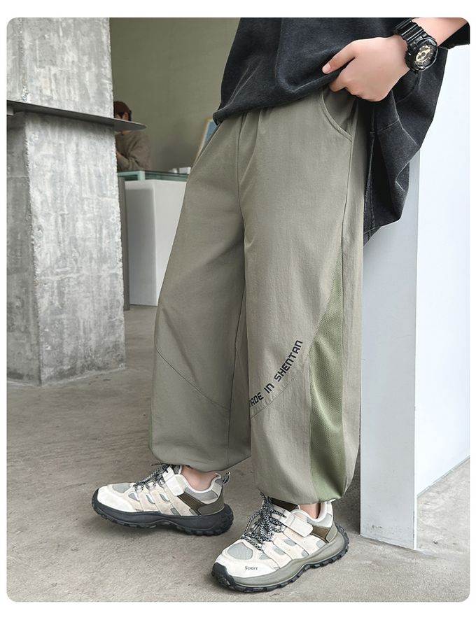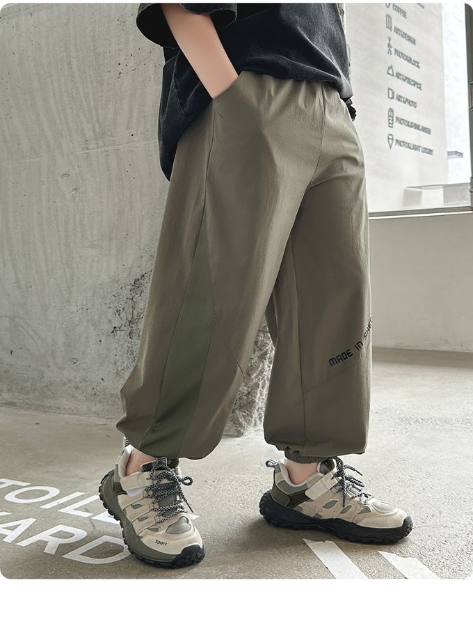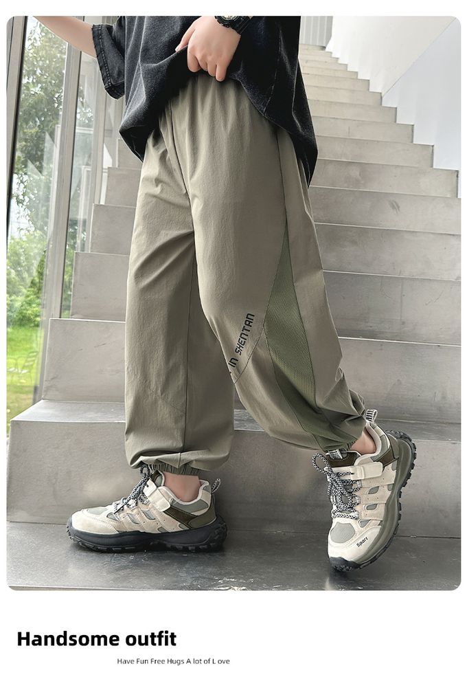 babybody - 腰鬆緊休閒束口長褲/防蚊褲-拼接透氣網格-深灰